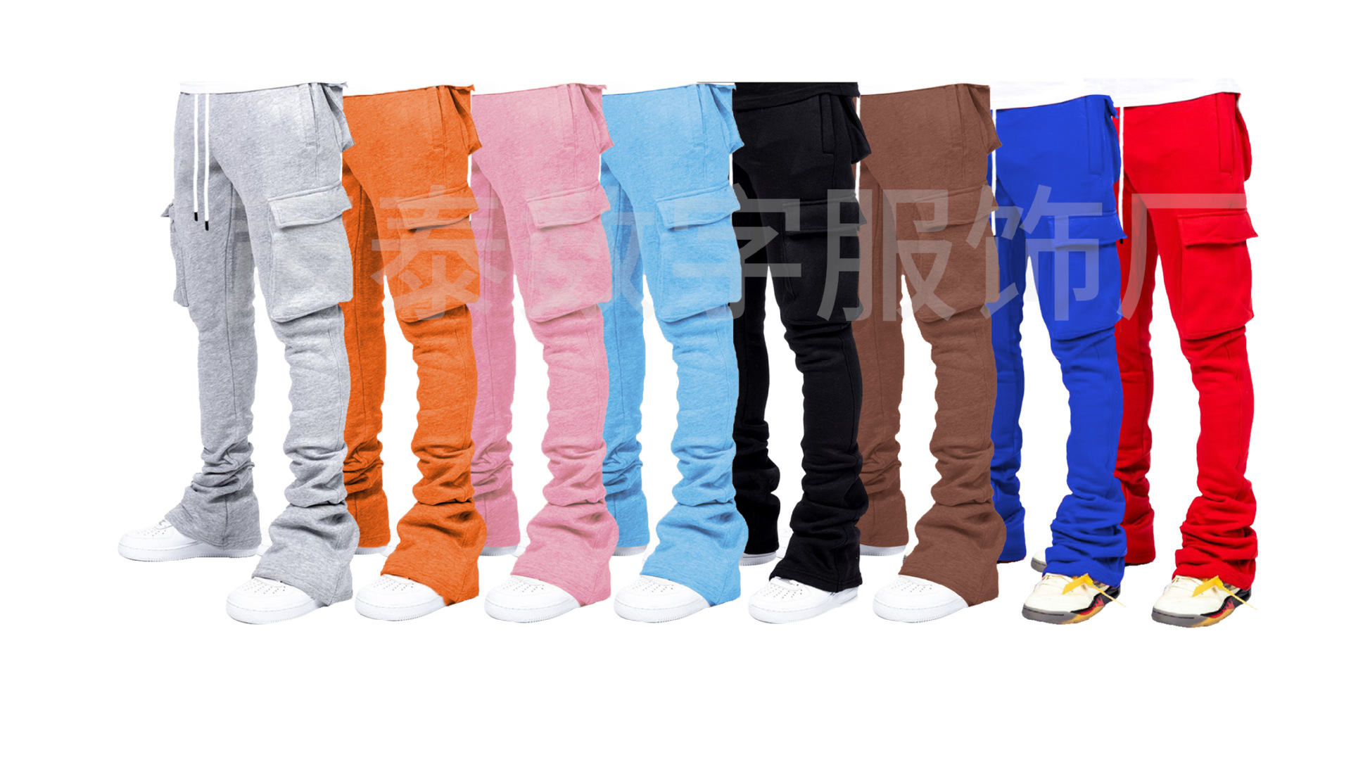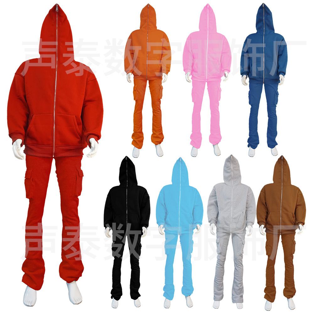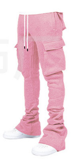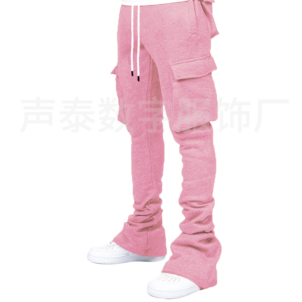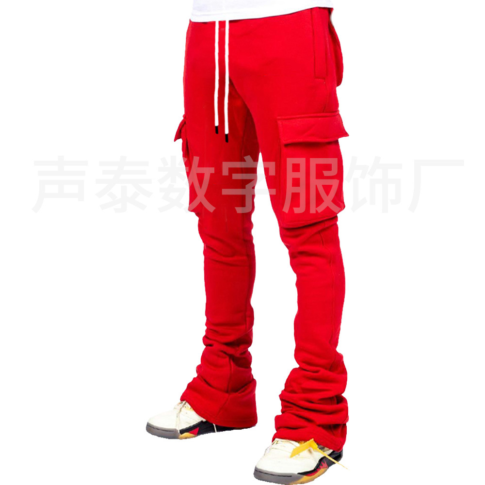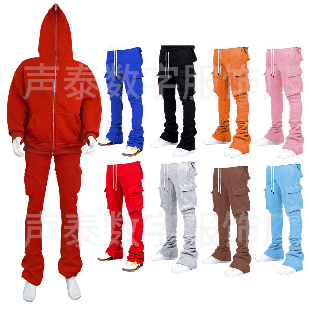 유럽과 미국 남성의 단색 캐주얼 기모 포켓 바지 가을 겨울 미국 패션 브랜드 스트리트 댄스 세트 힙합 바지