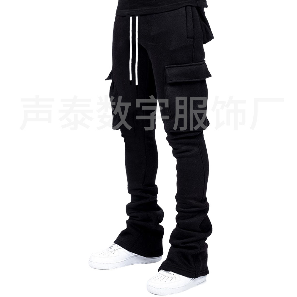 유럽과 미국 남성의 단색 캐주얼 기모 포켓 바지 가을 겨울 미국 패션 브랜드 스트리트 댄스 세트 힙합 바지스토어 가기