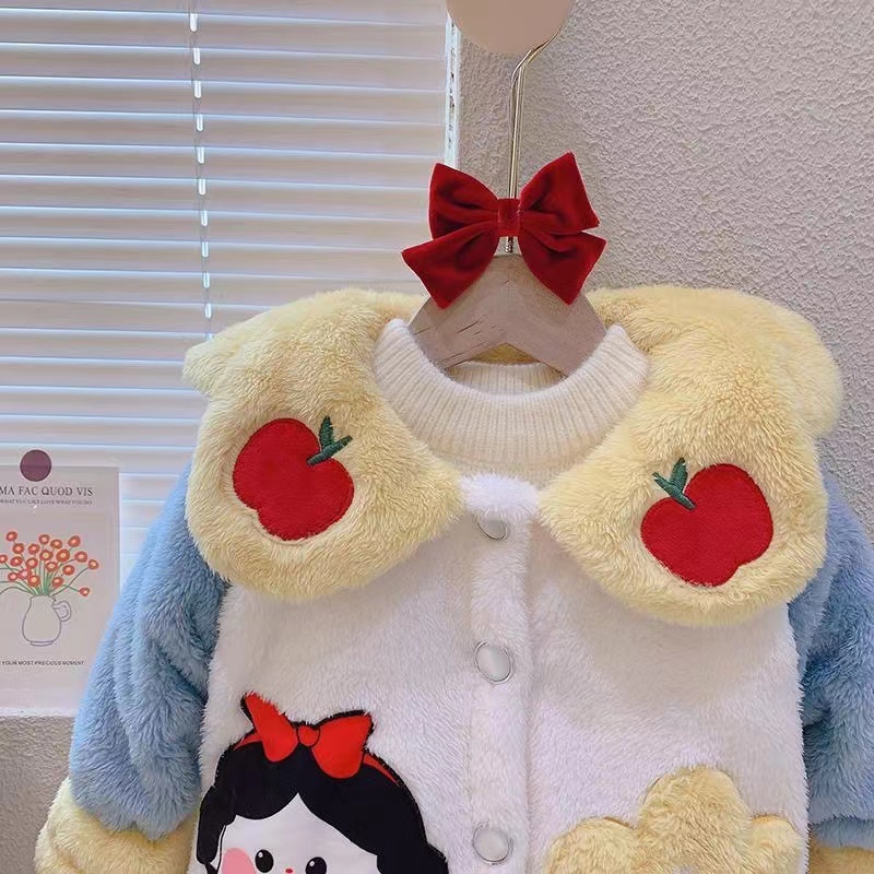 가을과 겨울 새로운 한국식 백설 공주 만화 따뜻한 기모 두꺼운 소녀 투피스 가정 옷 2023 New