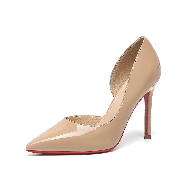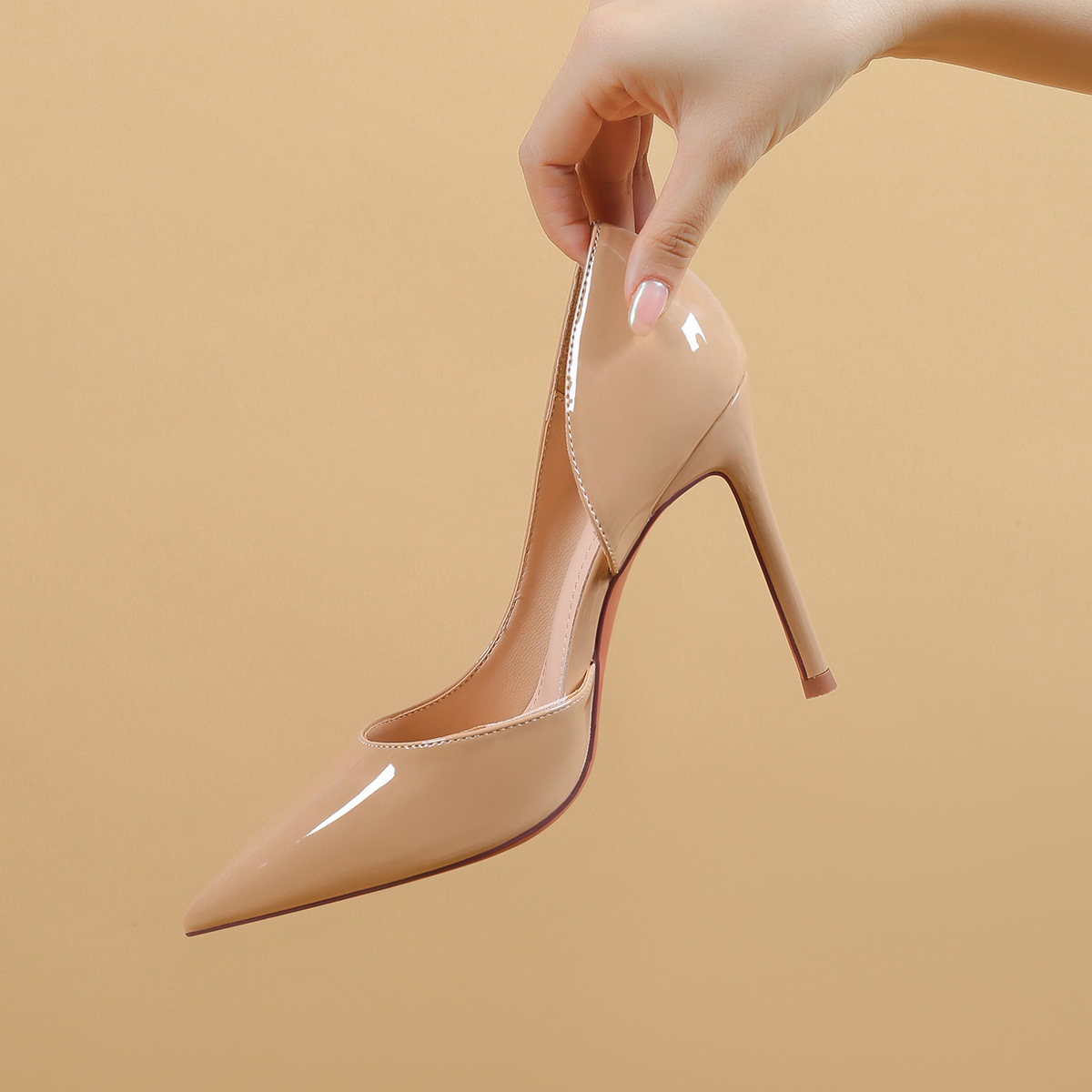 여성을위한 측면 중공 누드 하이힐 신발 2025 새로운 여자 프랑스어 스틸레토 다목적 섹시한 지적 발가락 인터넷 연예인 특허 가죽 신발스토어 가기
