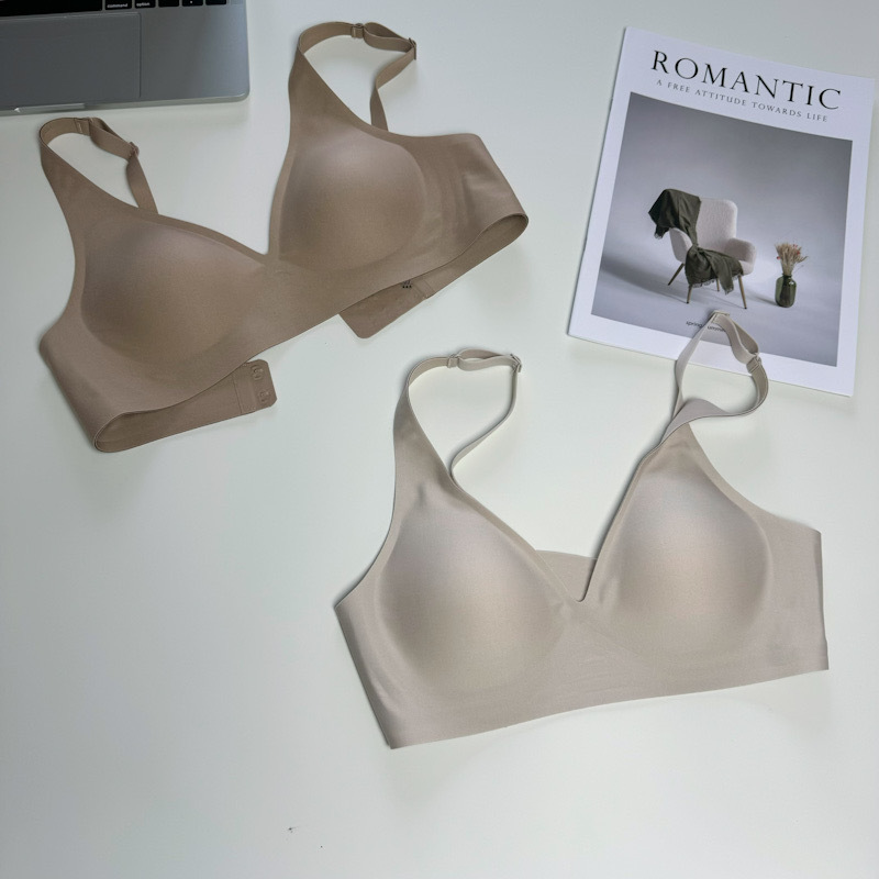 5508 젤리 스트립 원피스 얇은 컵 스포츠 속옷 여성용 링리스 큰 가슴 작은 푸시 업 여성용 브라스토어 가기