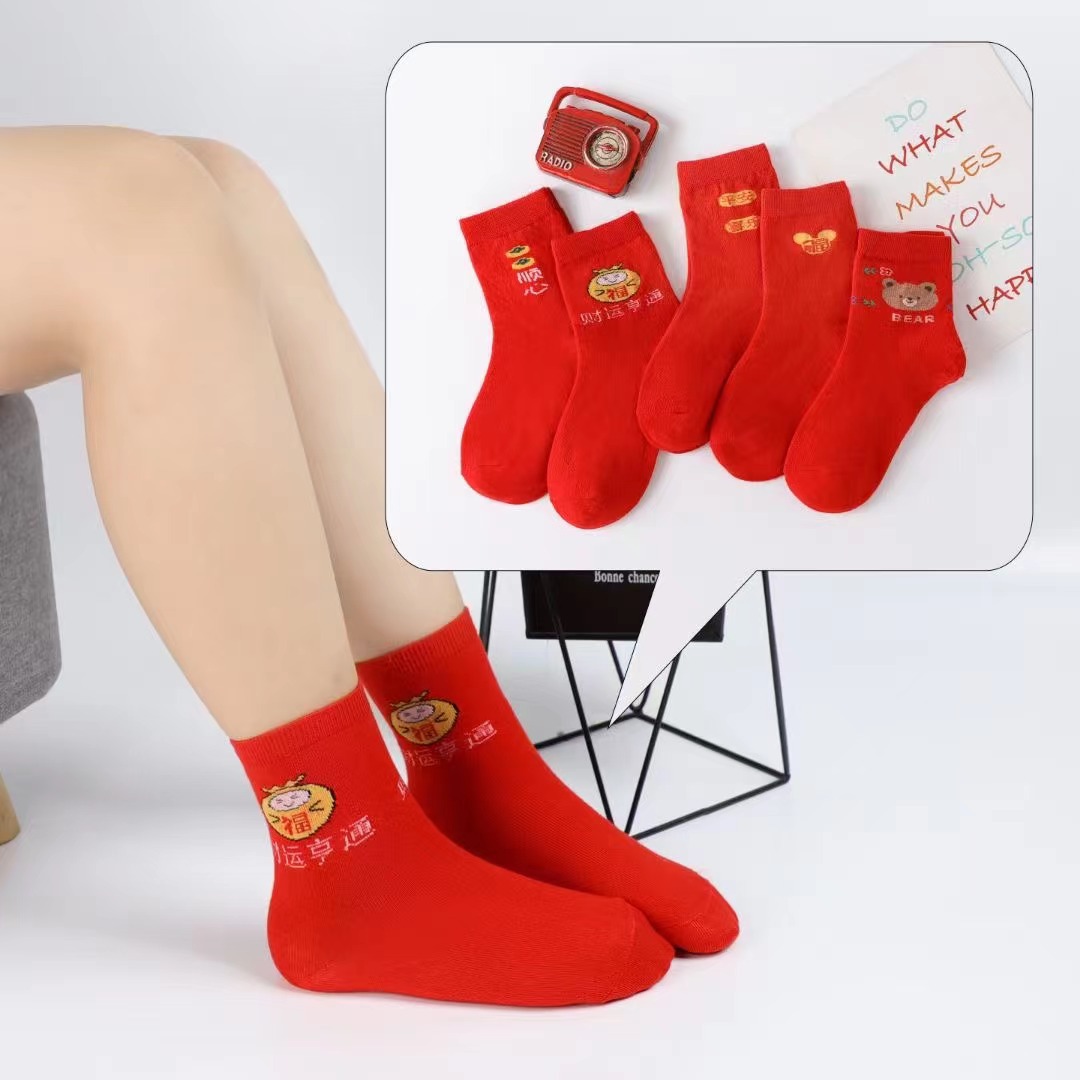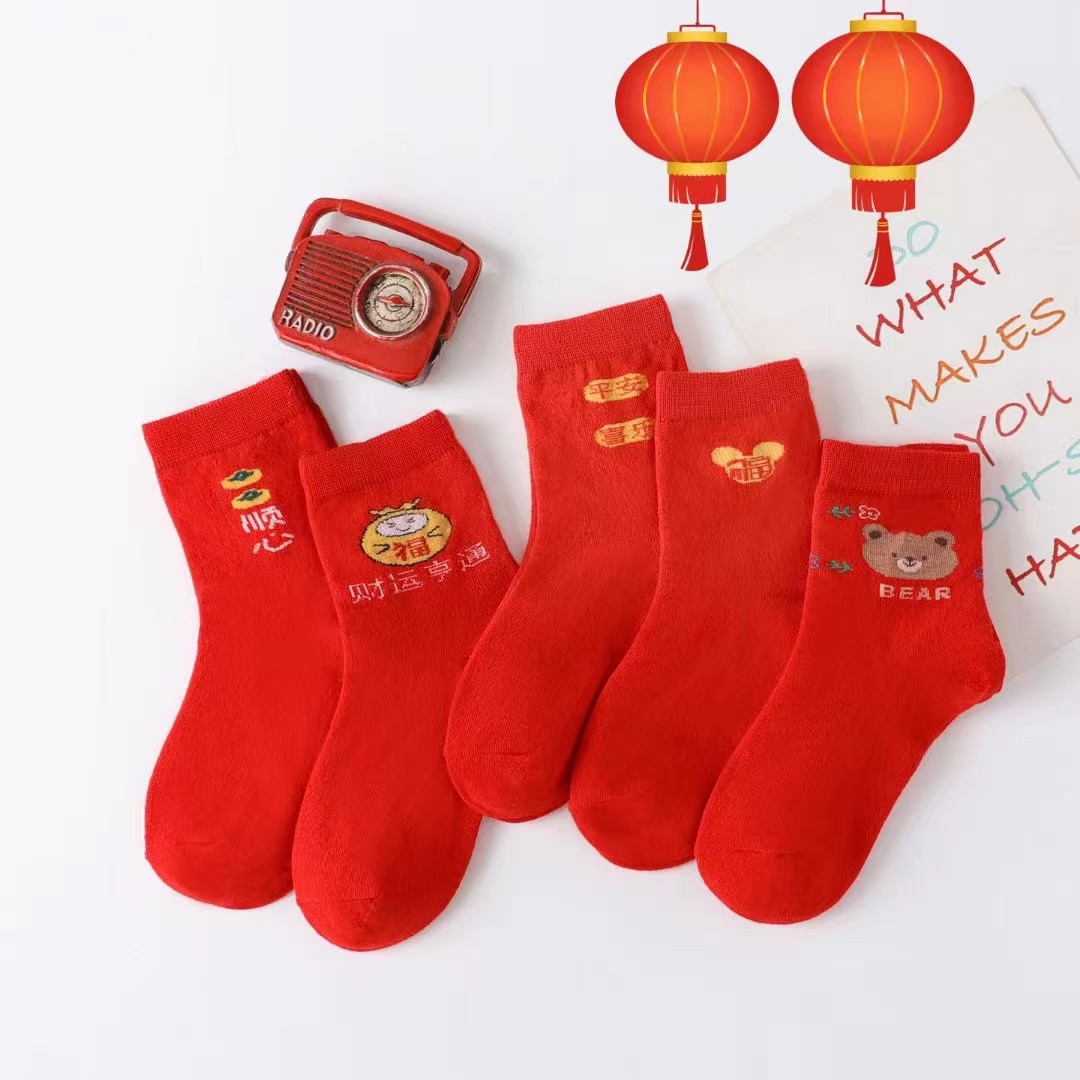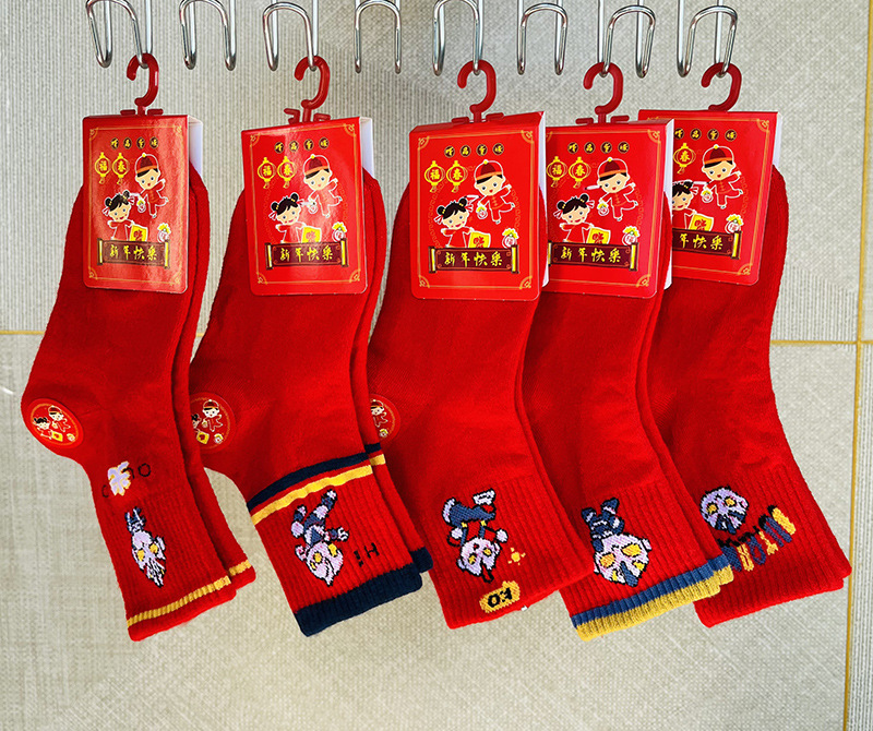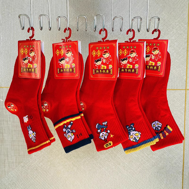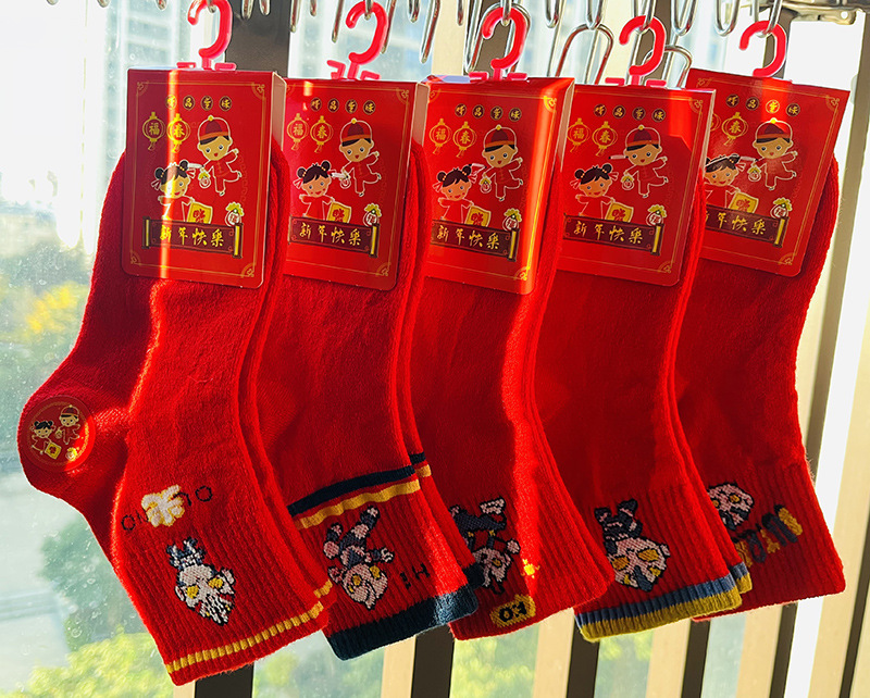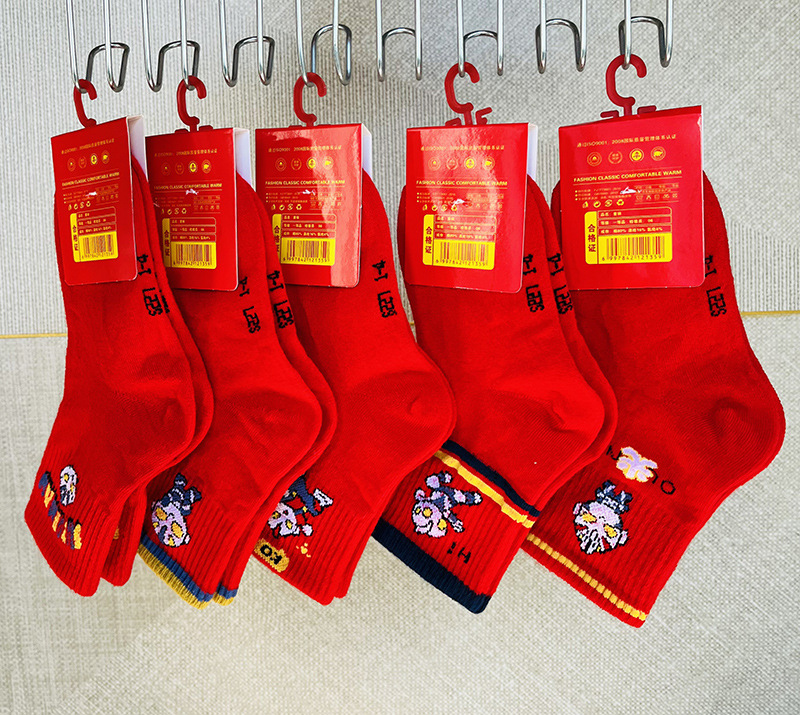 가을과 겨울 빨간 양말 아동면 양말 소년과 소녀 양말 축제 출생 년은 붉은 양말 탈취제를 퇴색시키지 않습니다.스토어 가기