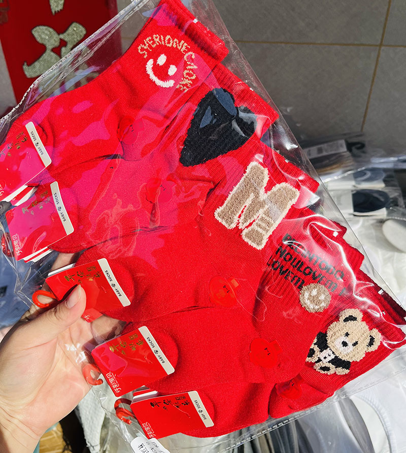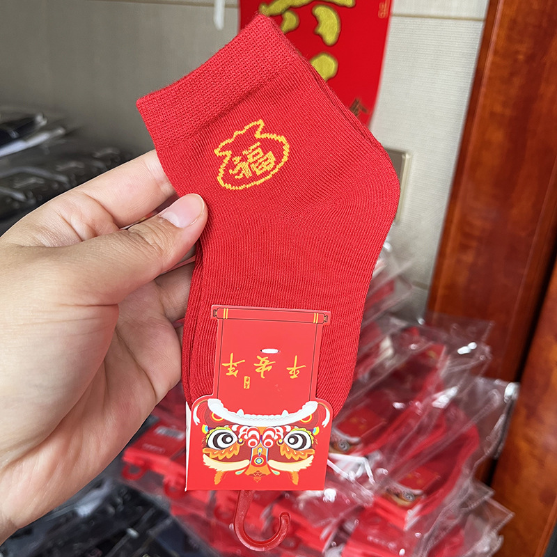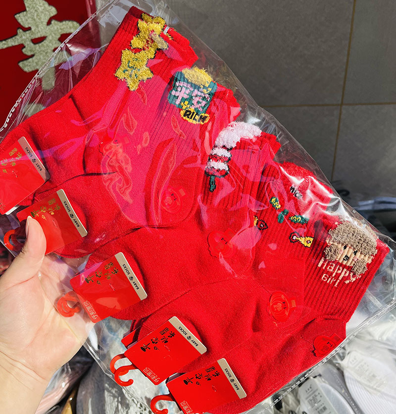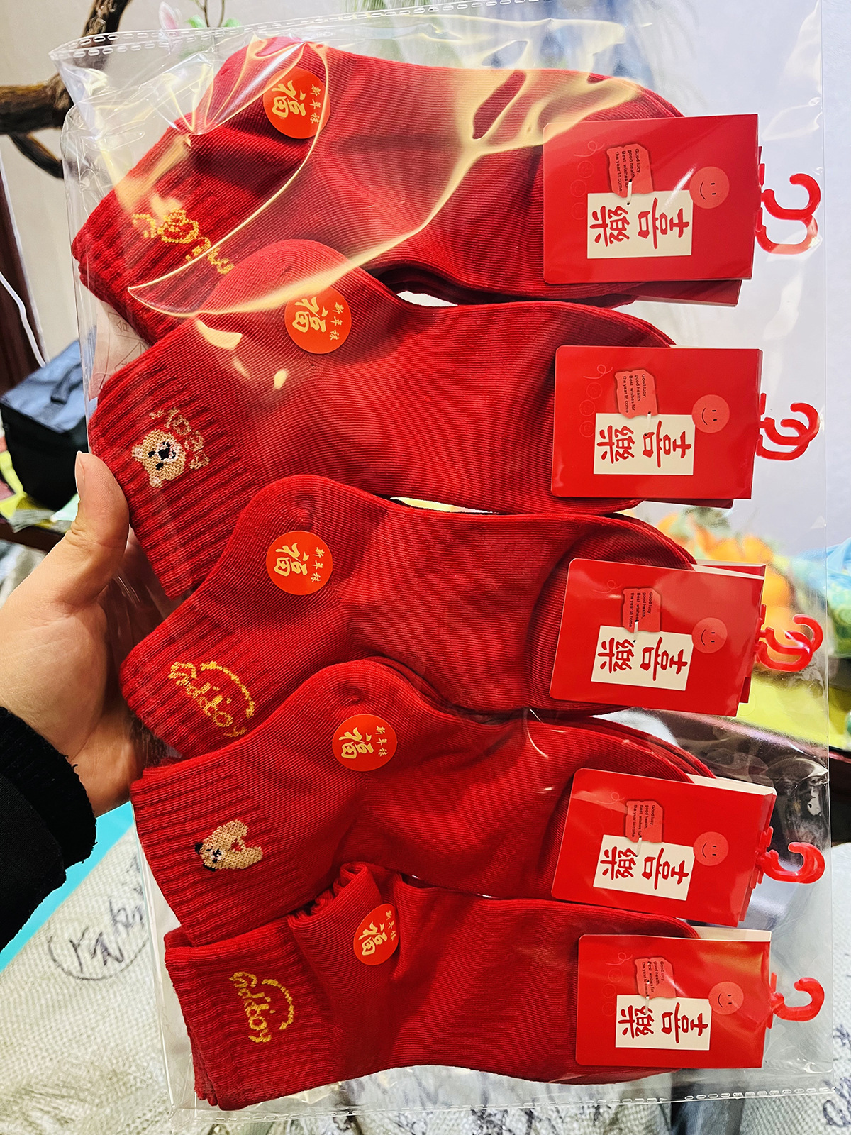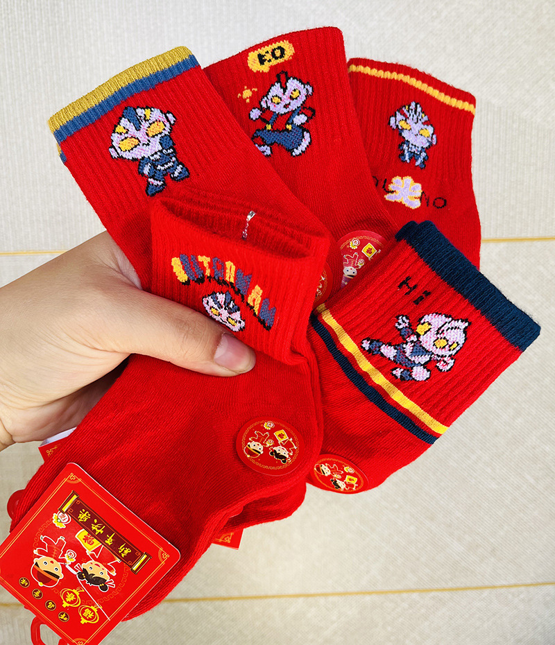 가을과 겨울 빨간 양말 아동면 양말 소년과 소녀 양말 축제 출생 년은 붉은 양말 탈취제를 퇴색시키지 않습니다.스토어 가기