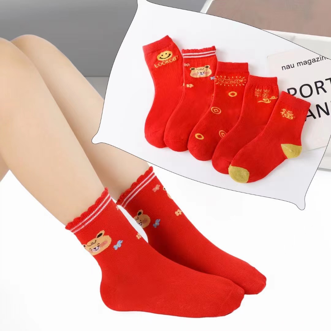가을과 겨울 빨간 양말 아동면 양말 소년과 소녀 양말 축제 출생 년은 붉은 양말 탈취제를 퇴색시키지 않습니다.