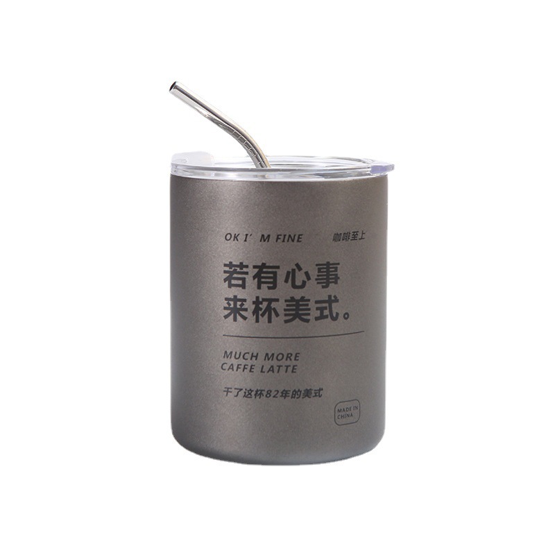스테인레스 스틸 아이스 아메리칸 커피 컵 라떼 진공 자동차 컵 빨대 사무실 보온병 컵과 더블 레이어 스트레이트 컵