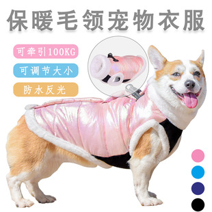 新款宠物衣服秋冬 反光保暖宠物棉衣带牵引狗狗衣服跨境新款