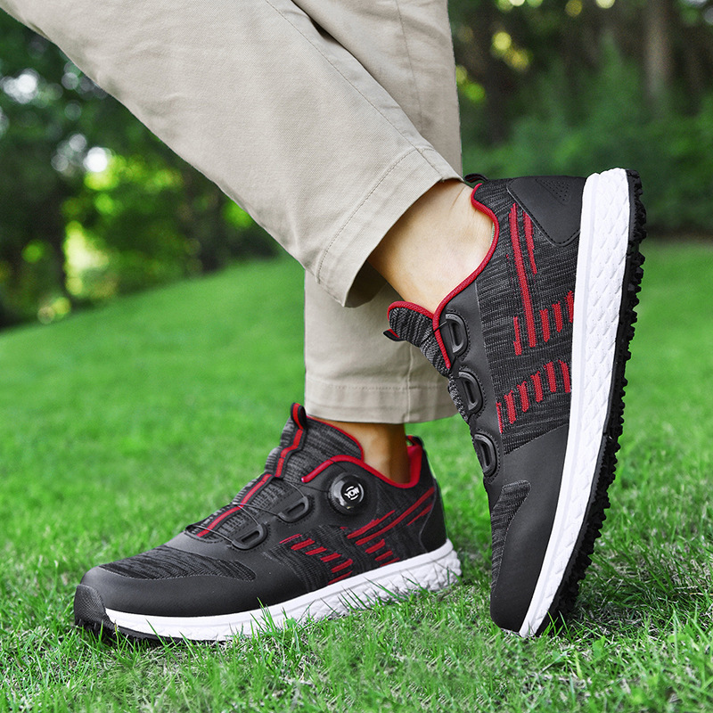 2023 새로운 플라이 우븐 골프 신발 남성용 회전 버클 퀵웨어 및 이륙 두꺼운 단독 캐주얼 신발 남성용 트렌디 신발