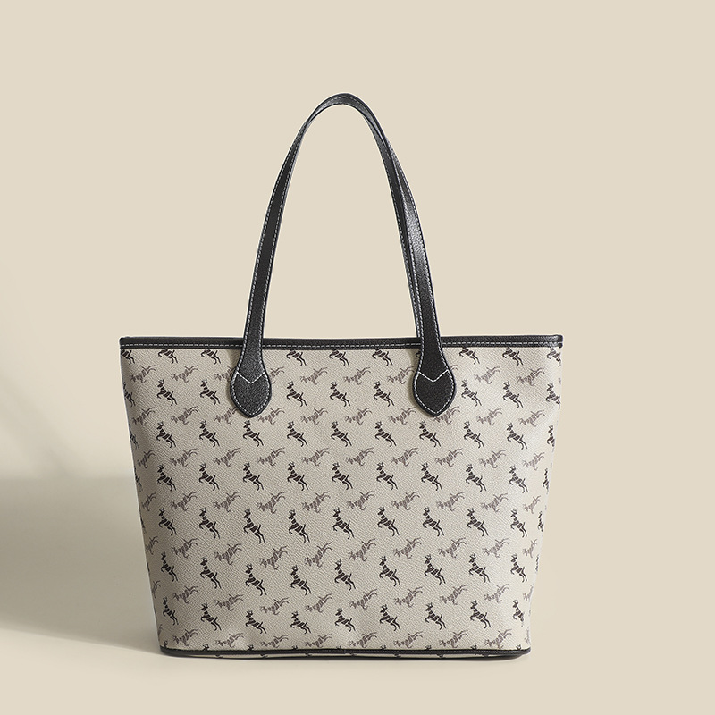 2023 봄과 여름 새로운 모든 매치 빈티지 프린트 토트백 여성용 대용량 심플 숄더백 여성용 핸드백