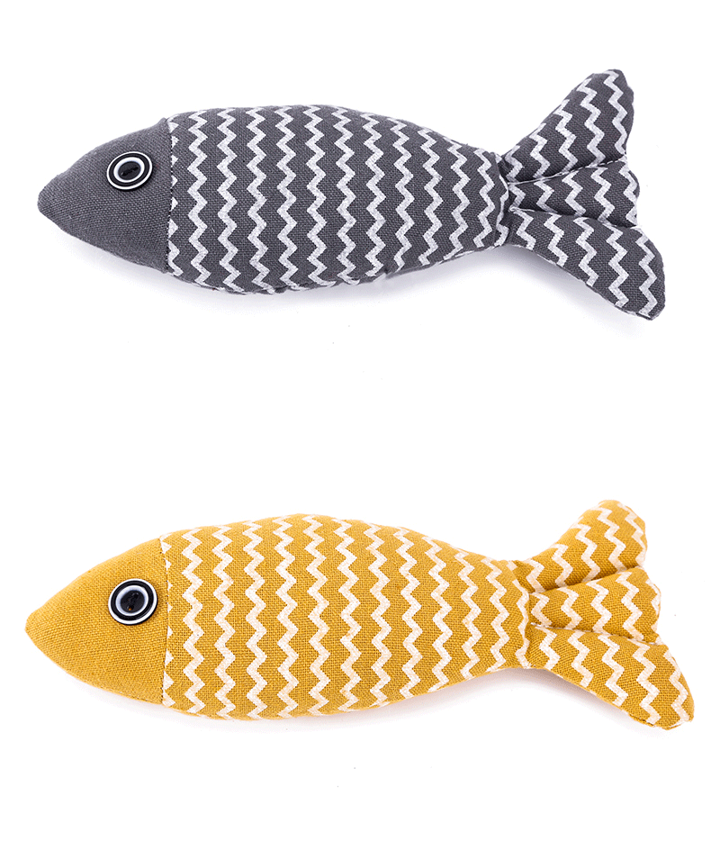• 애타게 고양이 린넨 물고기 [그레이]]