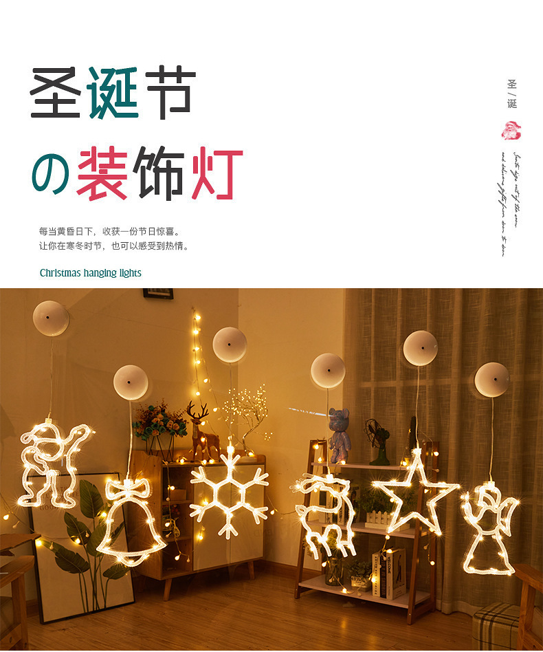 새로운 LED 흡입 컵 교수형 조명 창 크리스마스 장식 가게 분위기 장면 레이아웃 휴일 장식 조명