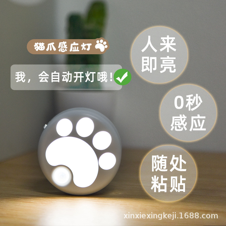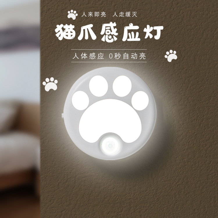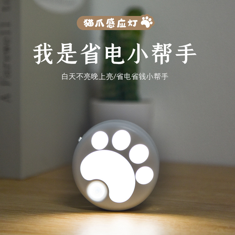 고양이 발 지능형 인체 유도 램프 야간 조명 침실 수면 분위기 램프 침대 옆 램프 수면 눈 보호 램프 USB