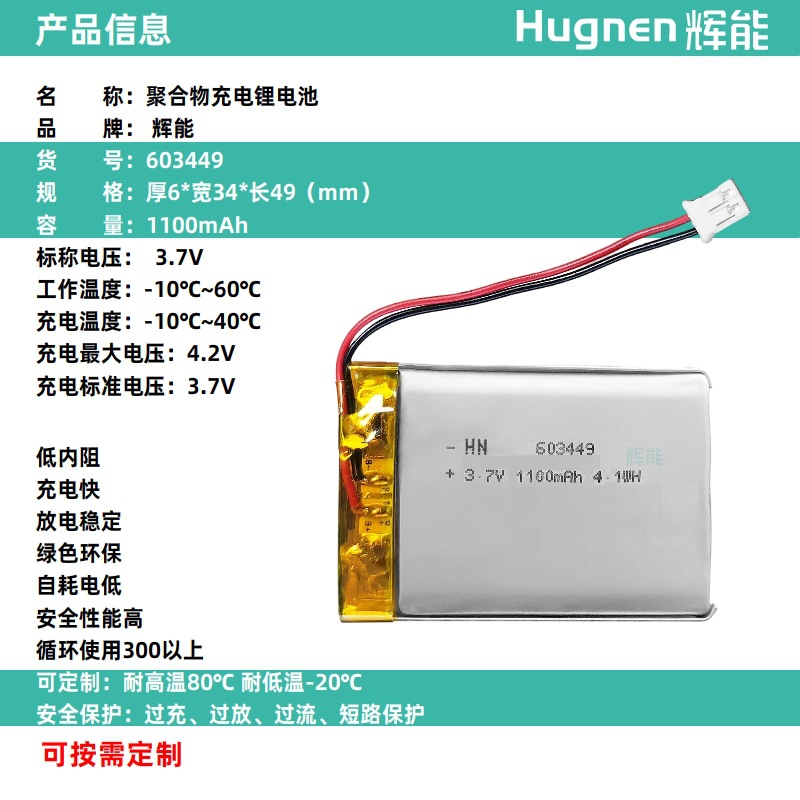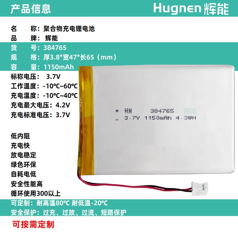 Huineng 리튬 배터리 803448 폴리머 소프트 팩 1350mAh5WH 충전식 전자 소프트 팩 3.7V 리튬 배터리 코어스토어 가기