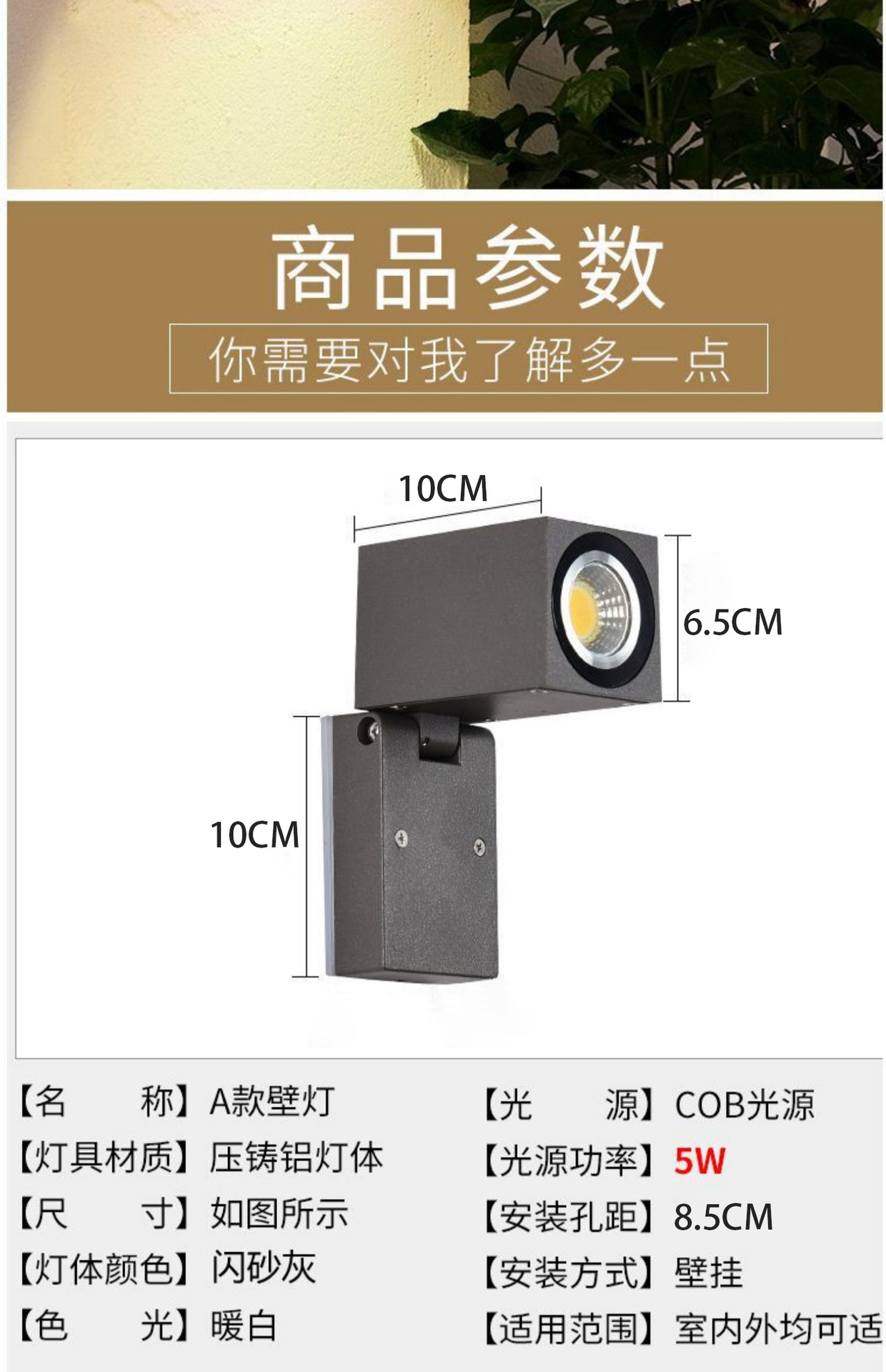 야외 벽 램프 led 방수 간단한 현대 정원 빛 유도 램프 발코니 복도 계단 조정 가능한 사각형 알루미늄