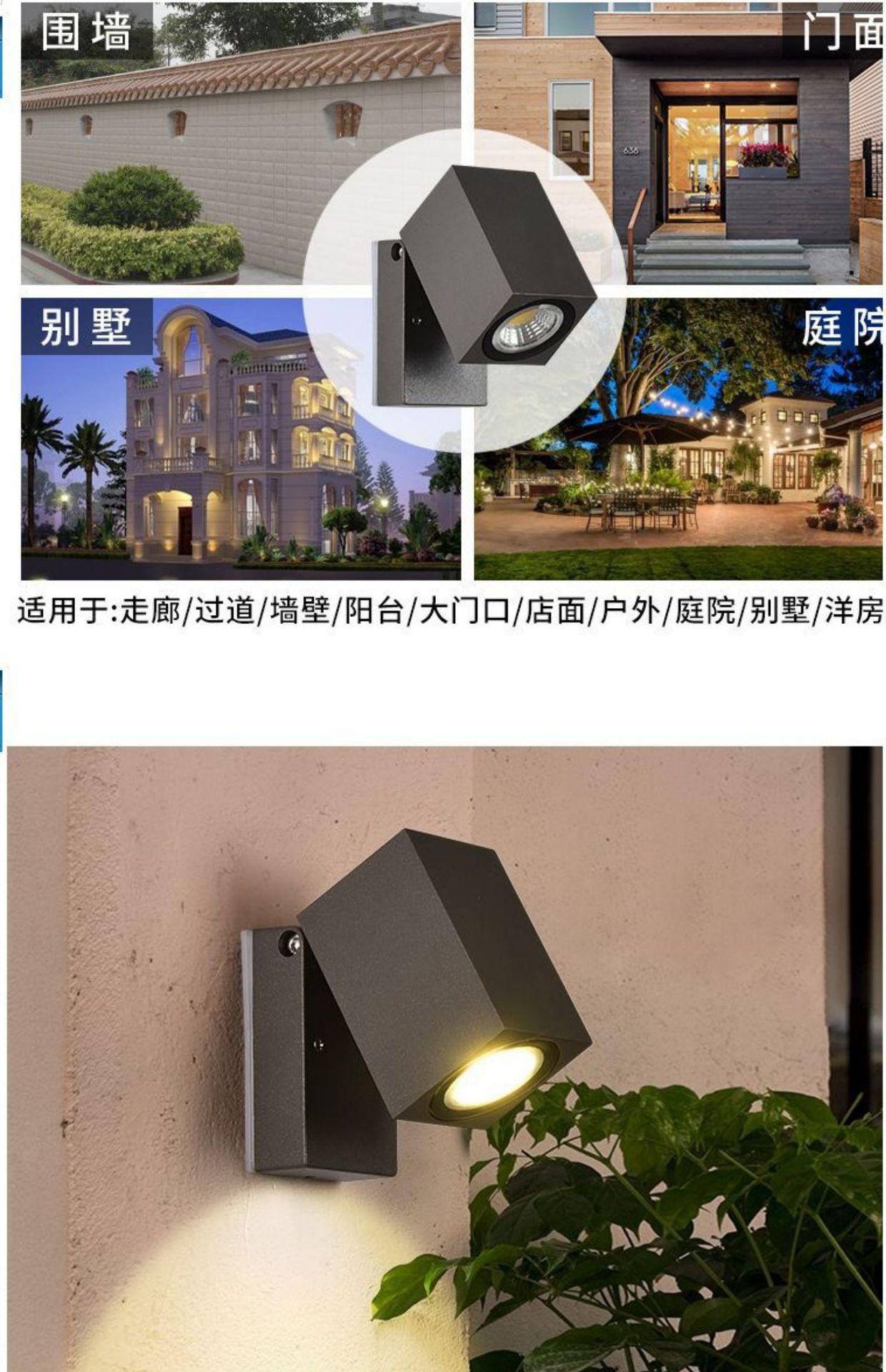 야외 벽 램프 led 방수 간단한 현대 정원 빛 유도 램프 발코니 복도 계단 조정 가능한 사각형 알루미늄스토어 가기