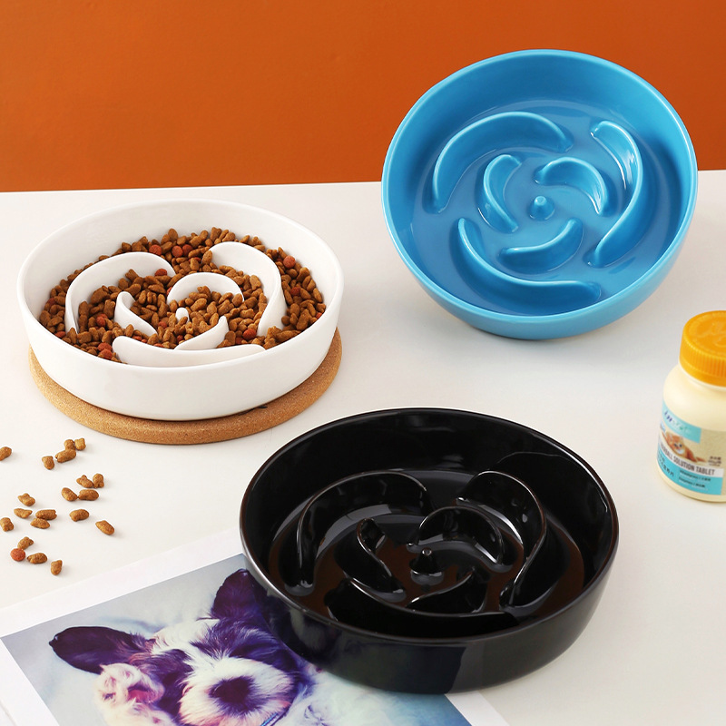 애완 동물 슬로우 푸드 그릇 장미 패턴 느린 먹이 접시 팁 방지 세라믹 고양이 그릇 개 분지 애완 동물 용품 슬로우 푸드스토어 가기