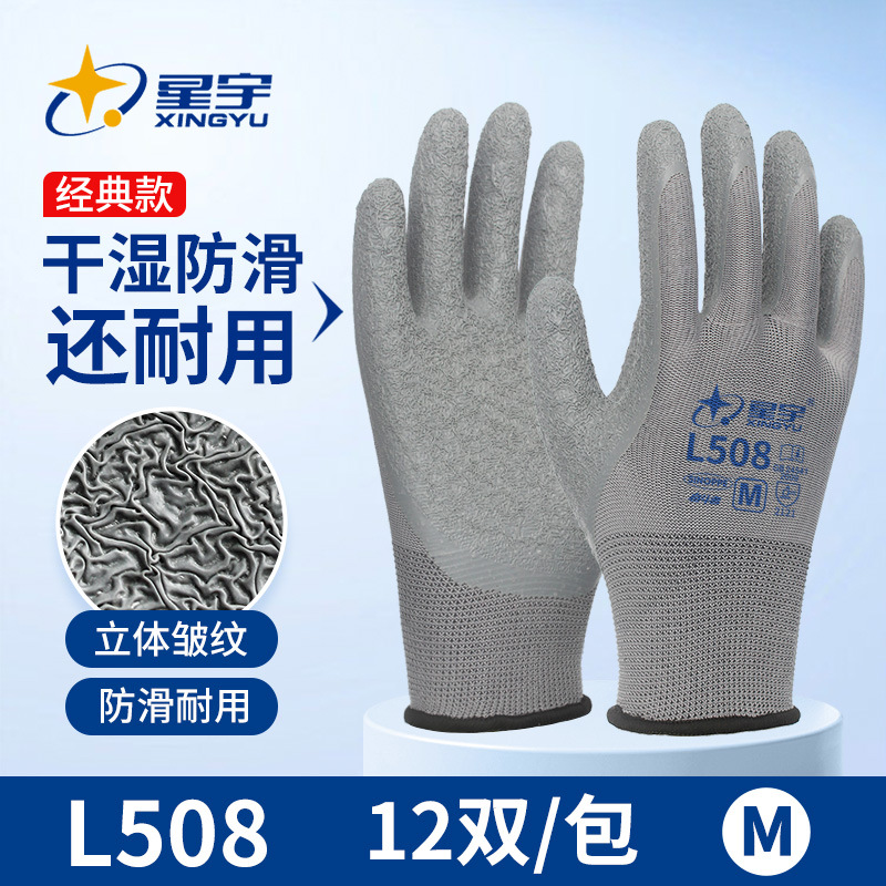 라텍스 장갑 13겹 주름 방지 내마모성 미끄럼 방지 고무 코팅 건설 현장 보호 작업용 도매 두꺼운 내마모성