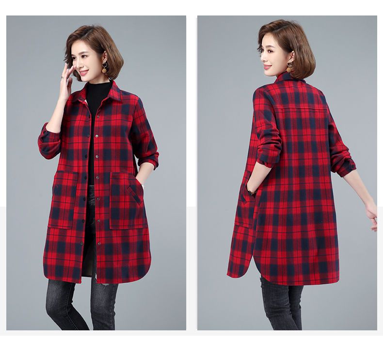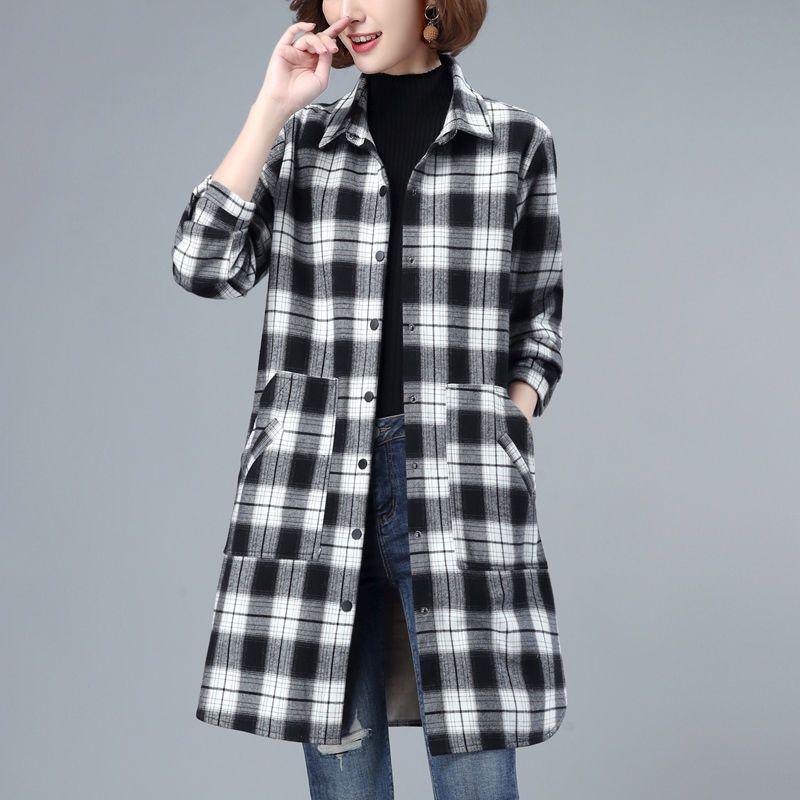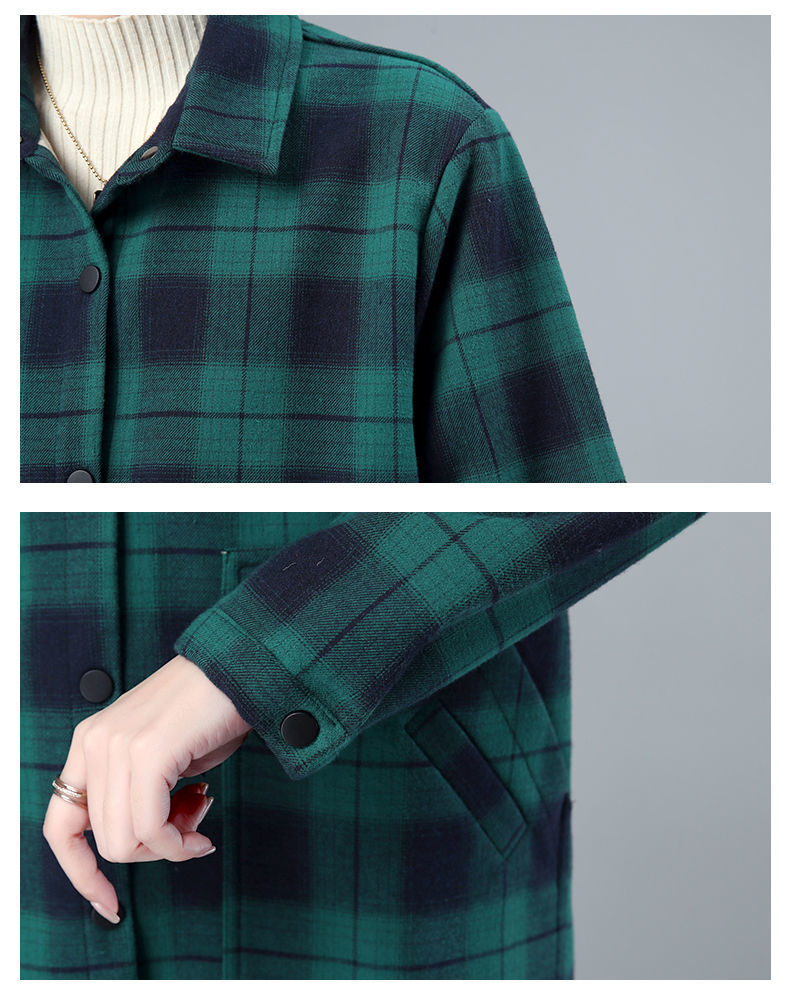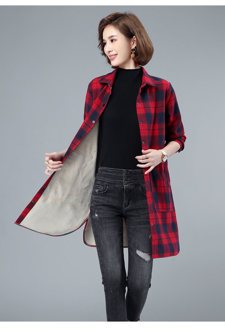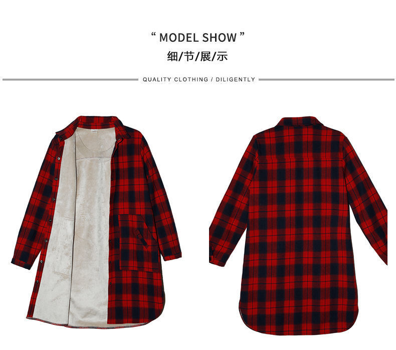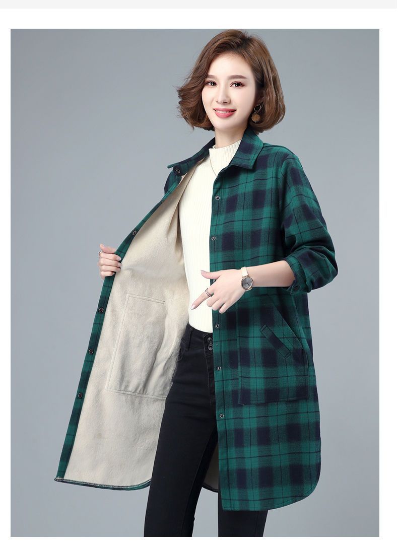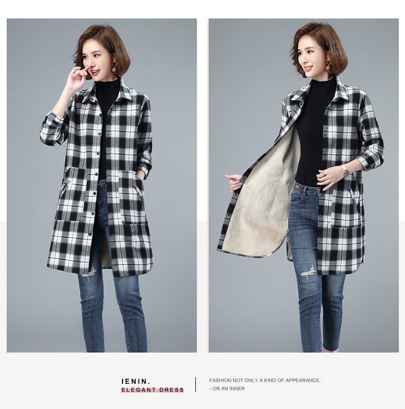 벨벳 안감 두꺼운 체크무늬 셔츠 여성용 2025 가을 겨울 루즈핏 캐주얼 중간 길이 레트로 상의 자켓스토어 가기