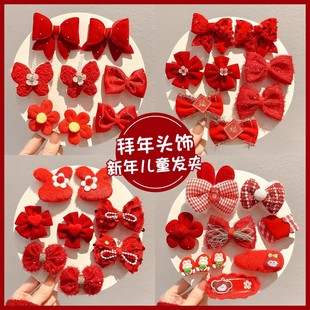 儿童新年红色蝴蝶结发夹女童过年侧边碎发刘海夹可爱喜庆夹子头饰 RMB:1.92