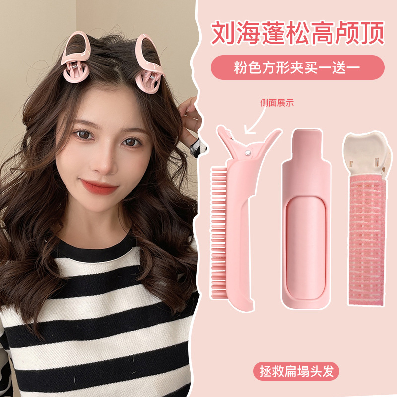 한국식 머리 푹신한 유물 머리 뿌리 앞머리 곱슬 머리 푹신한 클립 원활한 곱슬 클립 여성의 높은 두개골 탑 가을과 겨울 클립스토어 가기