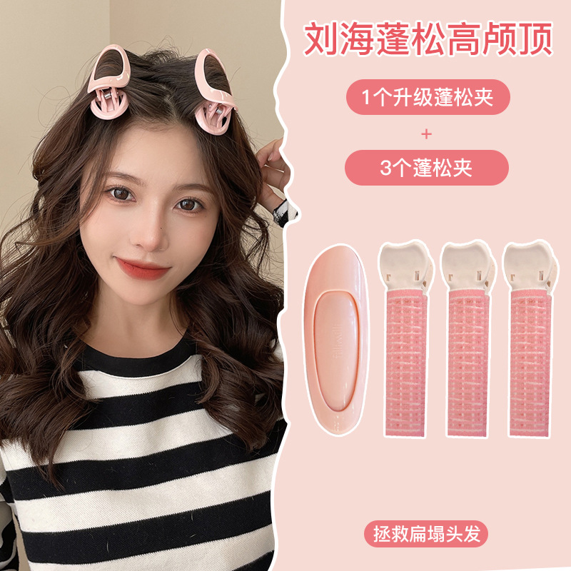 한국식 머리 푹신한 유물 머리 뿌리 앞머리 곱슬 머리 푹신한 클립 원활한 곱슬 클립 여성의 높은 두개골 탑 가을과 겨울 클립