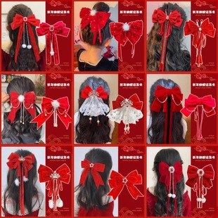 新年红色发饰2025新款蝴蝶结夹子可爱毛绒发卡头饰对夹过年发夹女 RMB:1.98