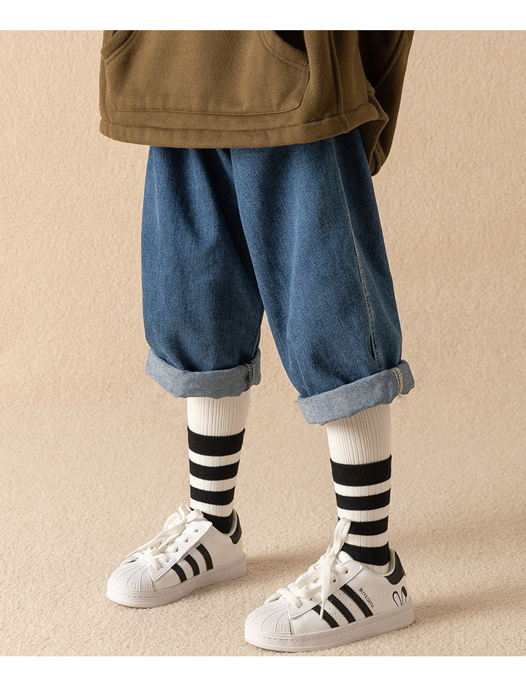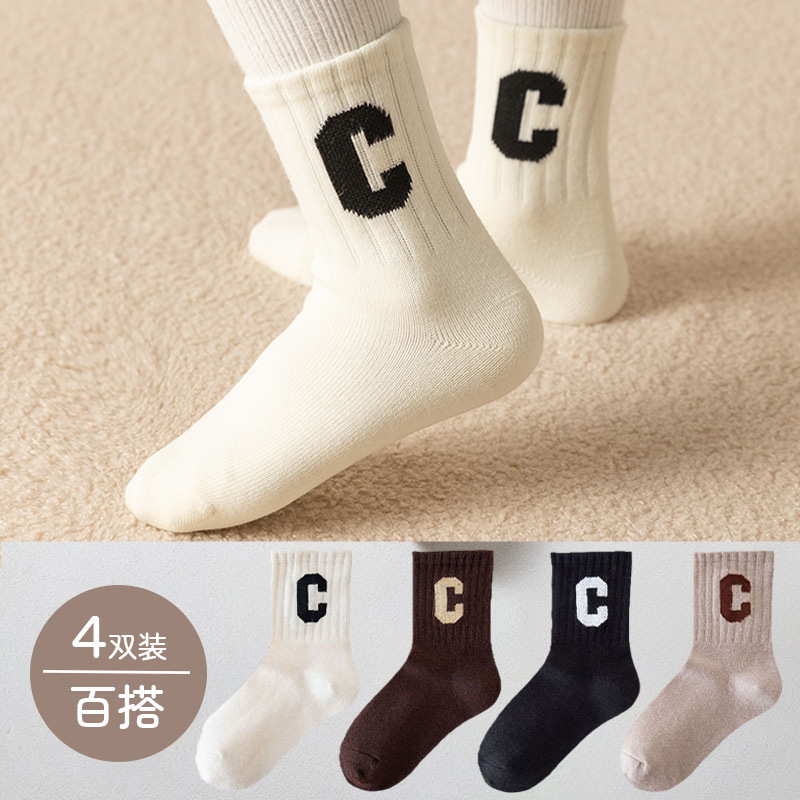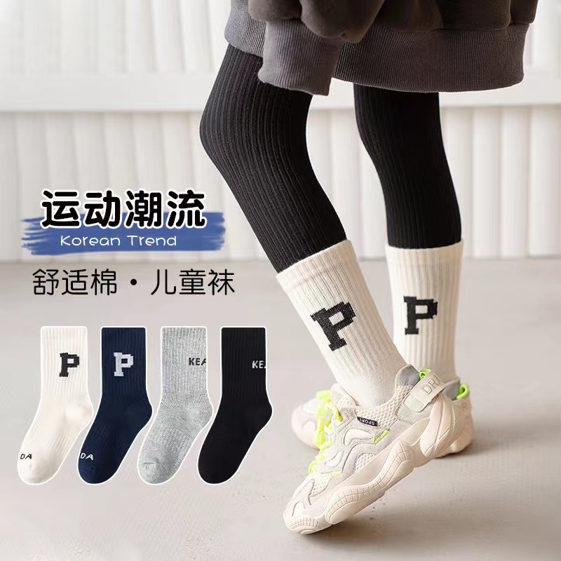 어린이 양말 봄과 가을 미드 튜브 양말 소년 소녀 면 양말 대형 어린이 양말 한국 유행 양말 R 편지 가을과 겨울 아기 양말스토어 가기