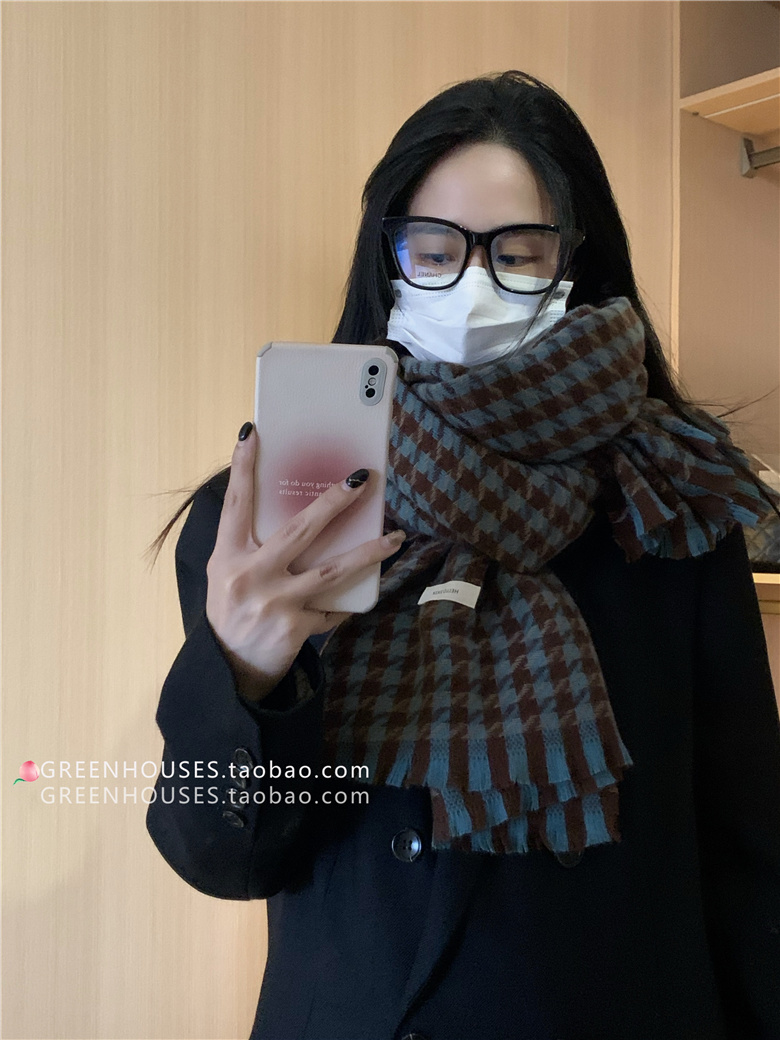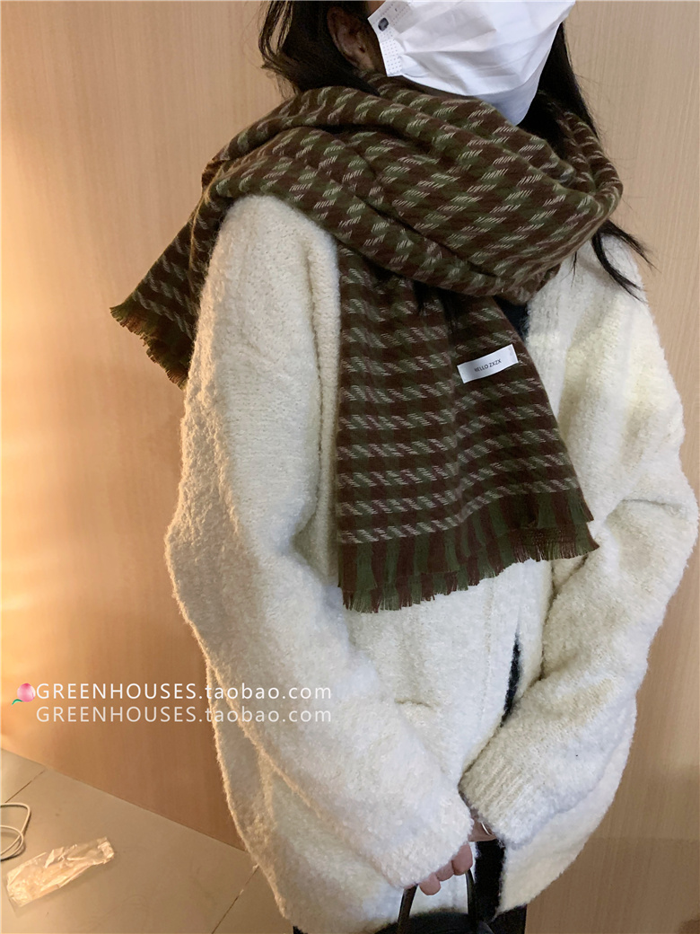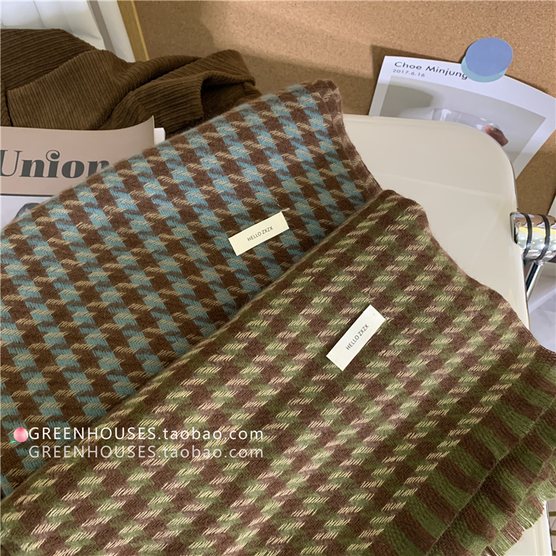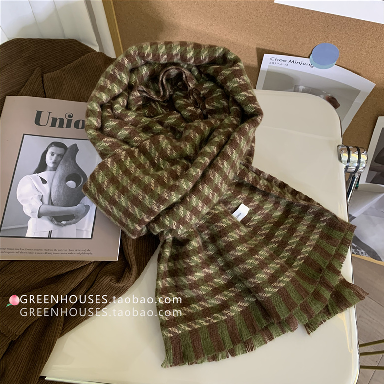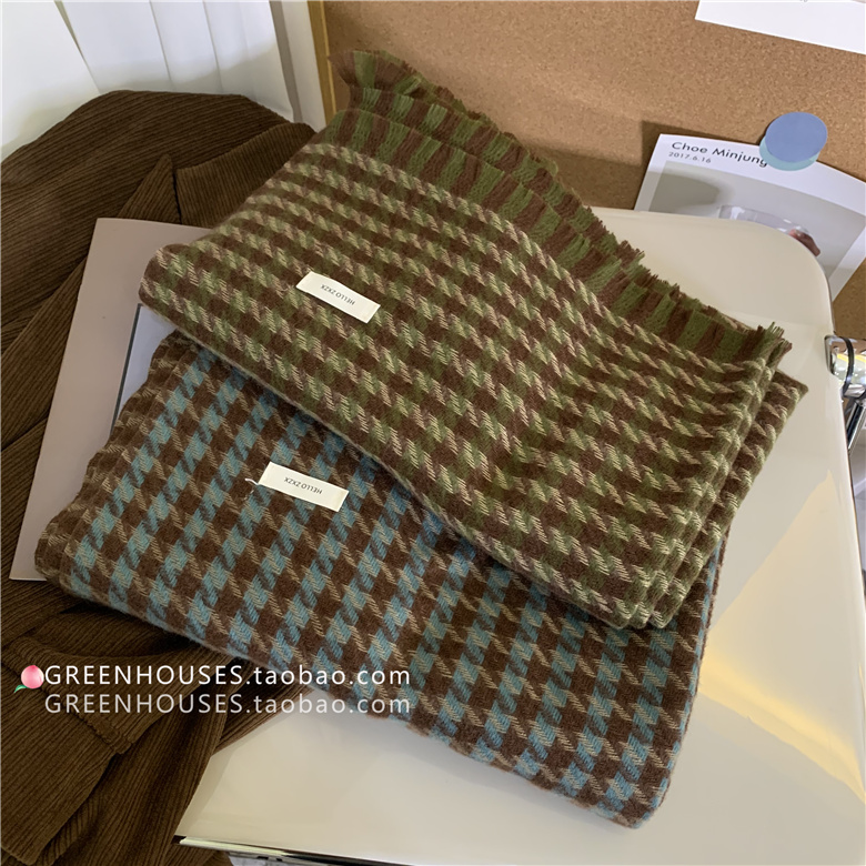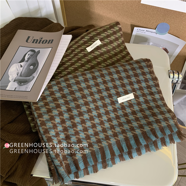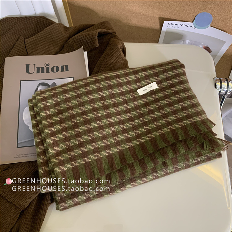 한국 인 부드러운 빈티지 격자 무늬 캐시미어 스카프 여자의 가을과 겨울 따뜻한 긴 목 목도리 학생 남성스토어 가기