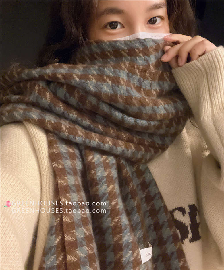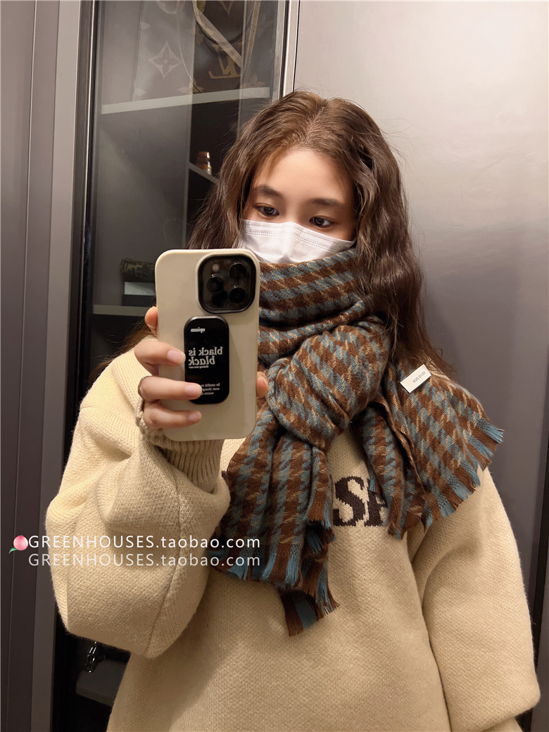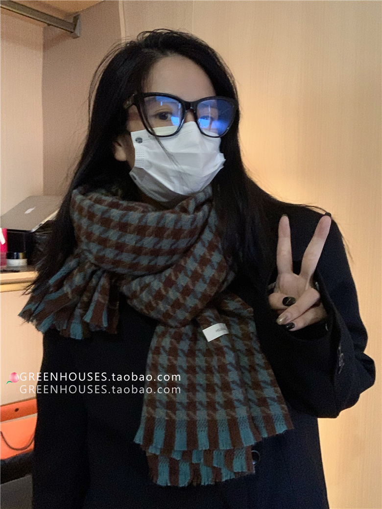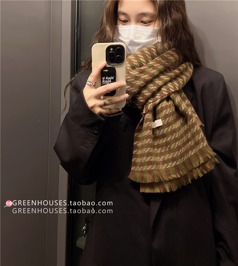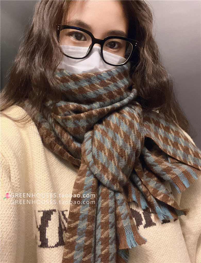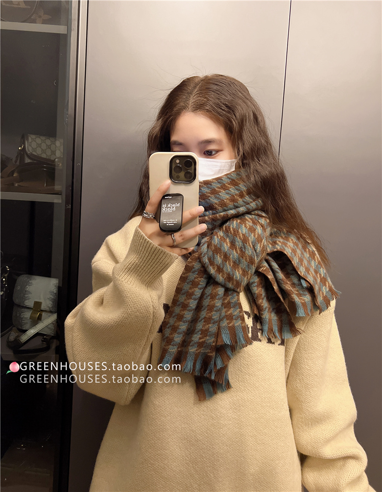 한국 인 부드러운 빈티지 격자 무늬 캐시미어 스카프 여자의 가을과 겨울 따뜻한 긴 목 목도리 학생 남성스토어 가기
