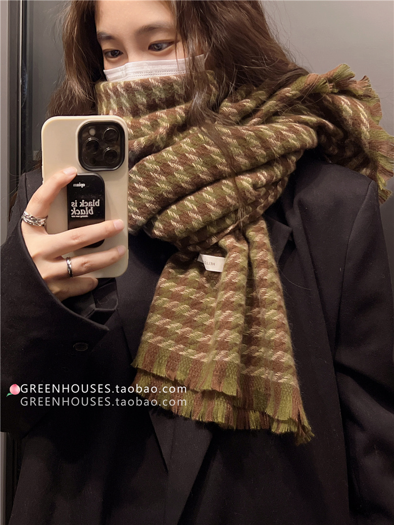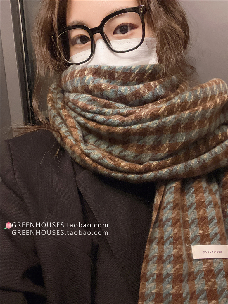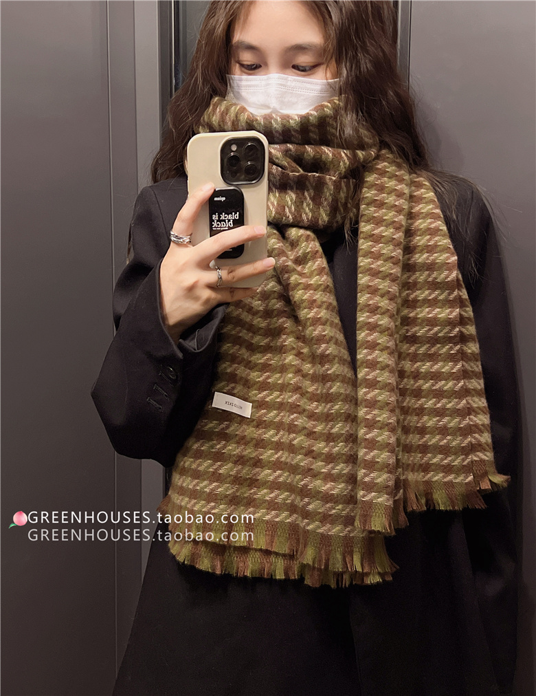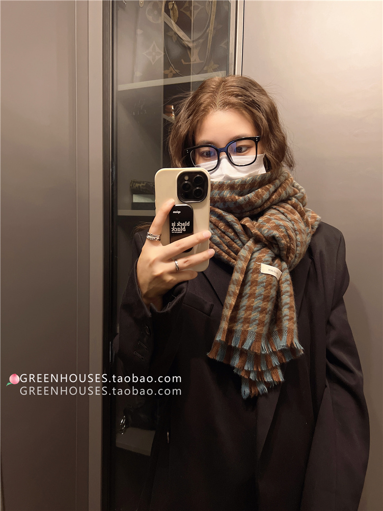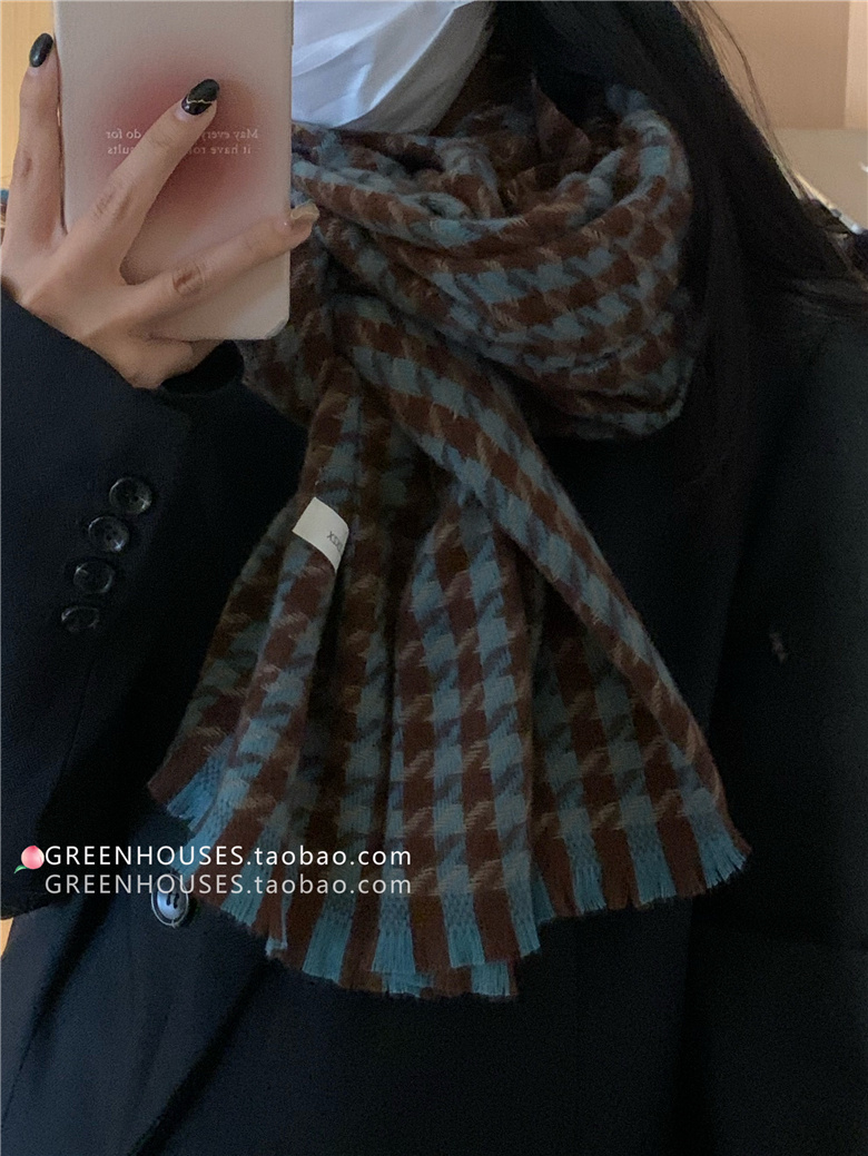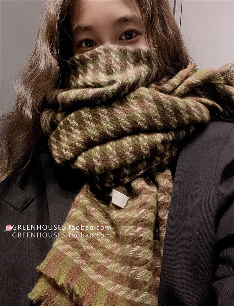 한국 인 부드러운 빈티지 격자 무늬 캐시미어 스카프 여자의 가을과 겨울 따뜻한 긴 목 목도리 학생 남성스토어 가기