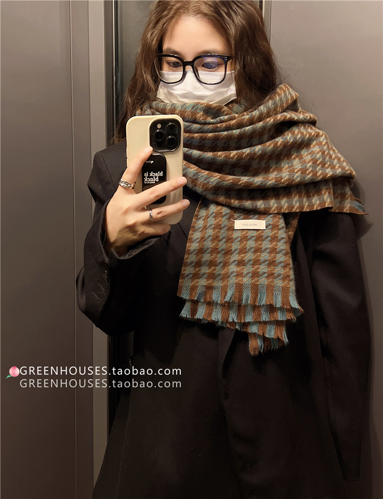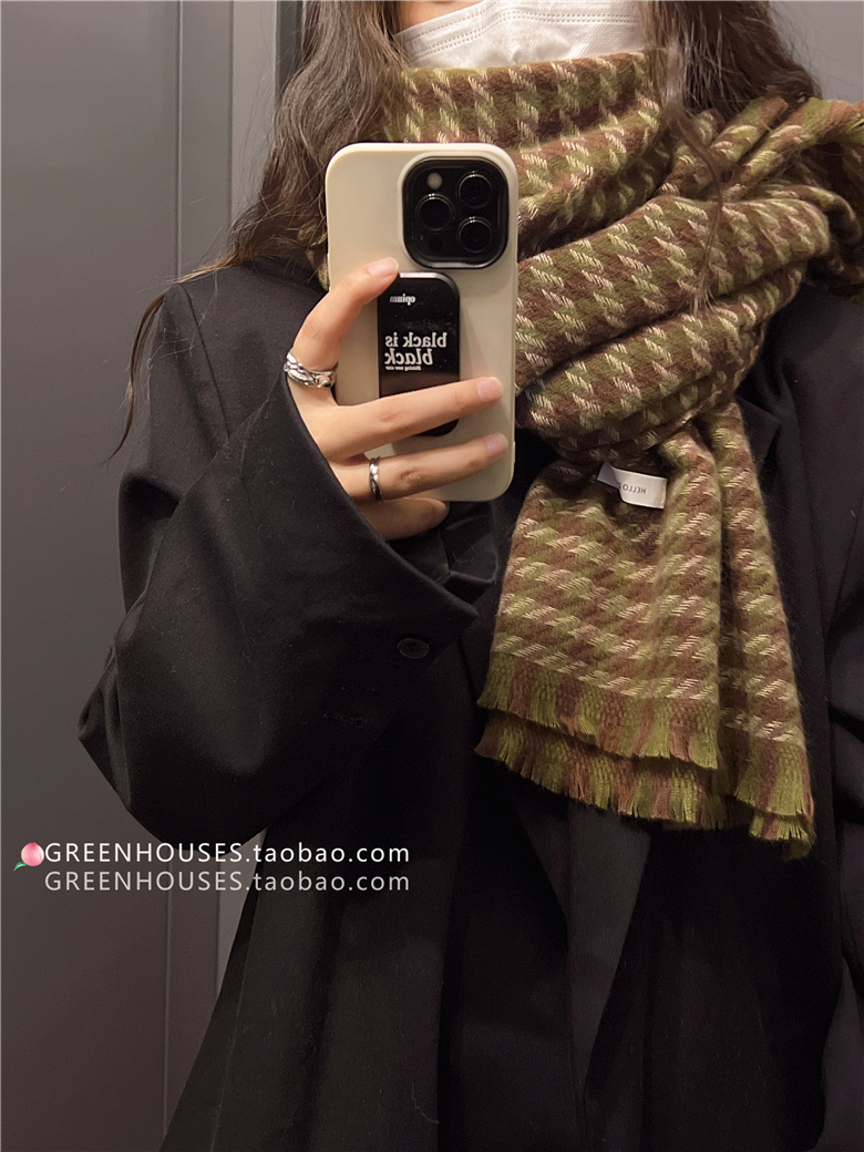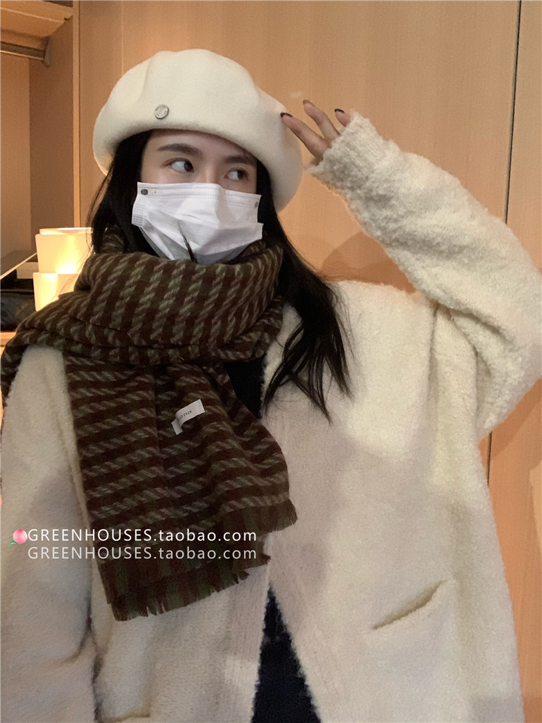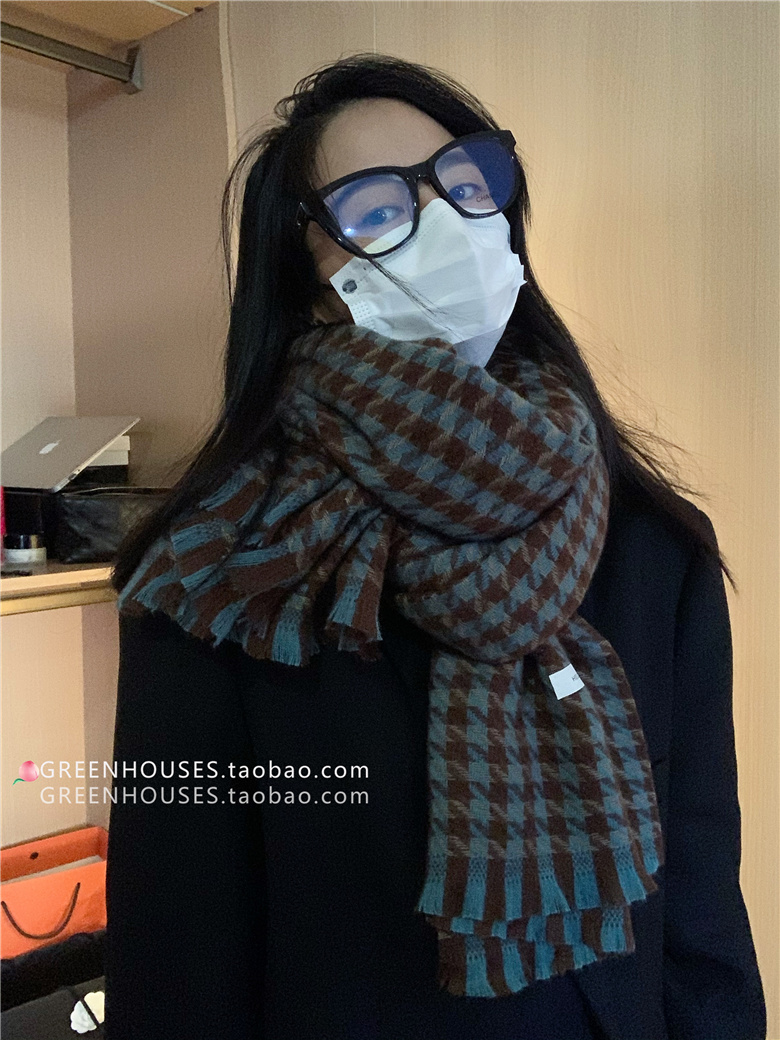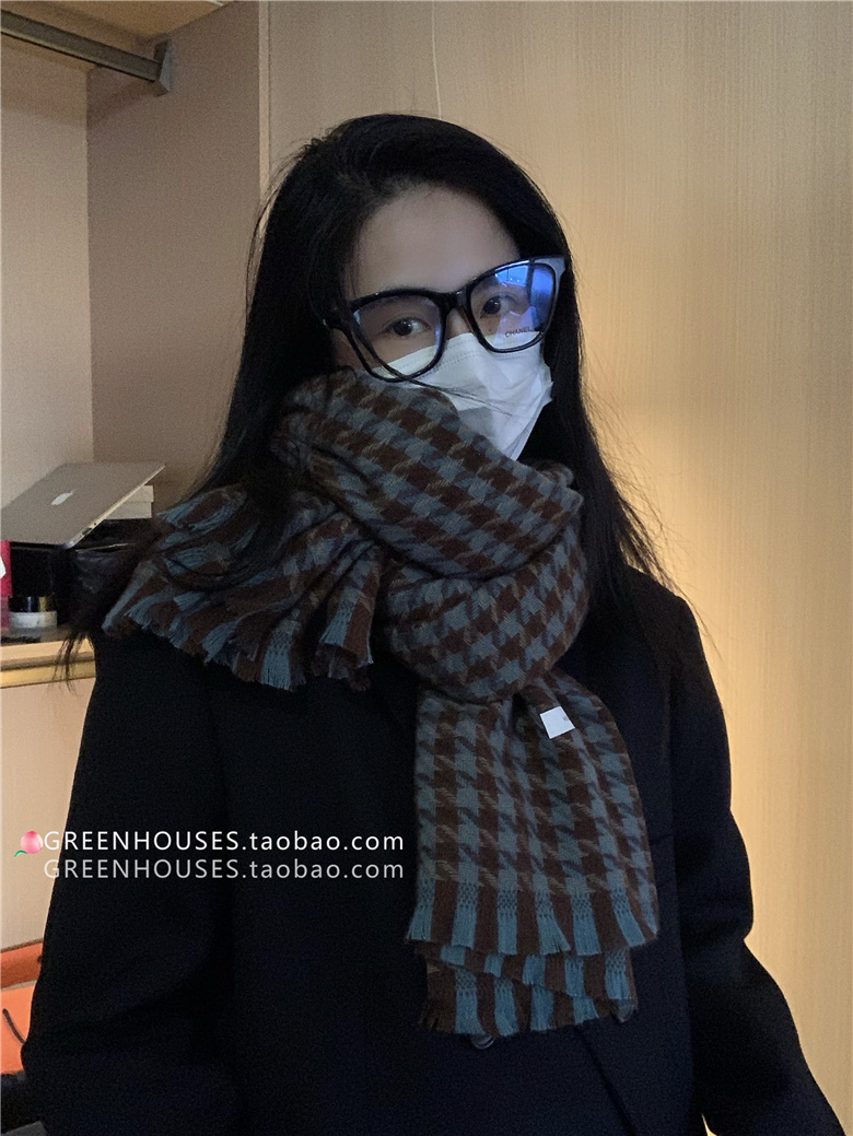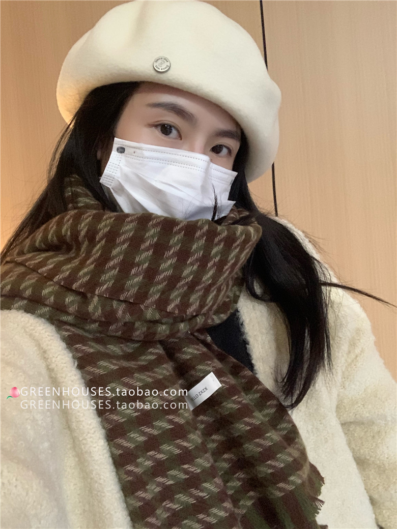 한국 인 부드러운 빈티지 격자 무늬 캐시미어 스카프 여자의 가을과 겨울 따뜻한 긴 목 목도리 학생 남성스토어 가기