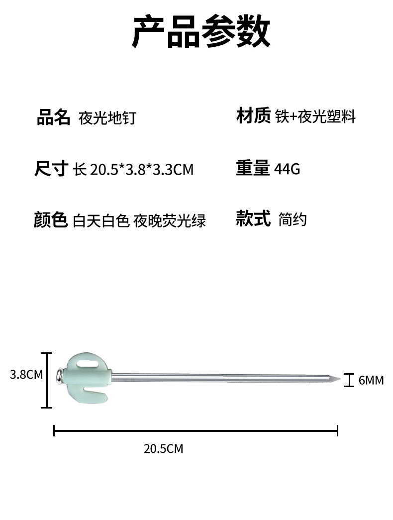야외 고정 텐트 형광 지상 손톱 길고 대담한 캠핑 야외 캐노피 빛나는 철 손톱 20cm스토어 가기