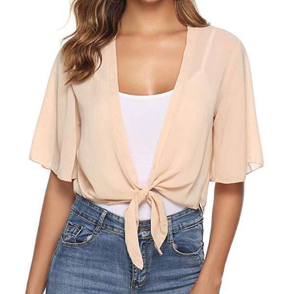 2023 새로운 여성용 봄과 여름 쉬폰 카디건 크로스 보더 여성용 단색 반팔 쉬폰 셔츠 여성 캐주얼 탑스토어 가기