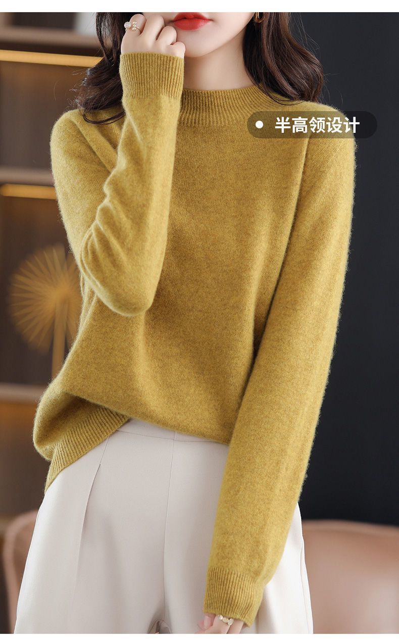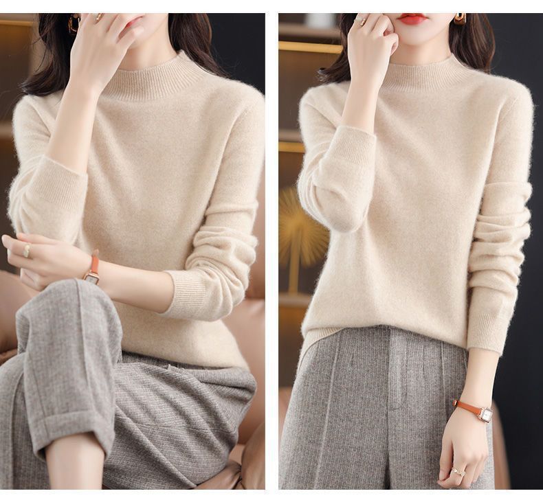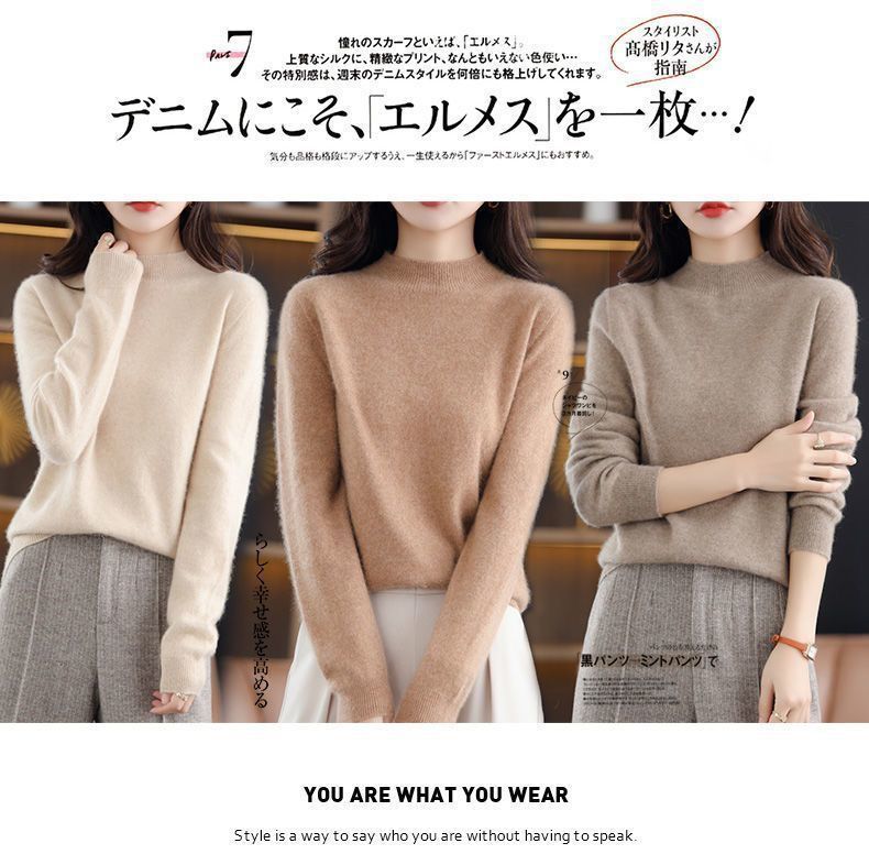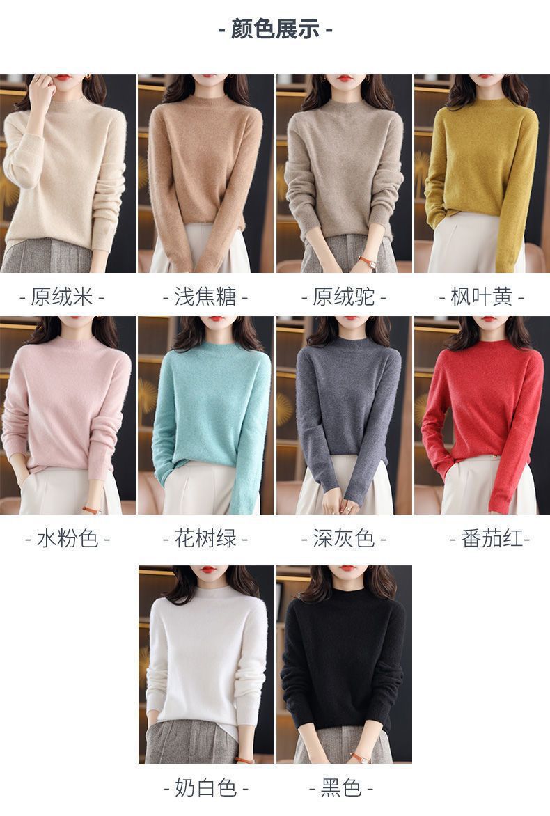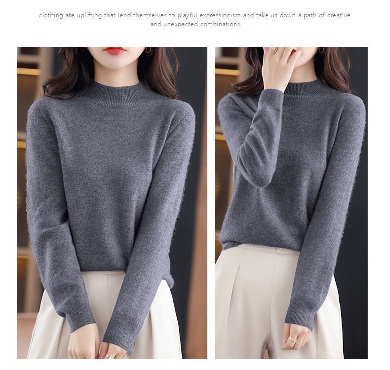 가을과 겨울의 새로운 미드 칼라 스웨터 여성용 풀오버 스웨터 내부 긴 소매 \ 짧은 소매 플러스 사이즈 탑스토어 가기