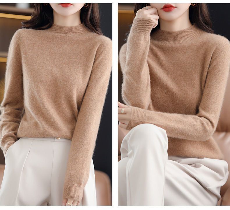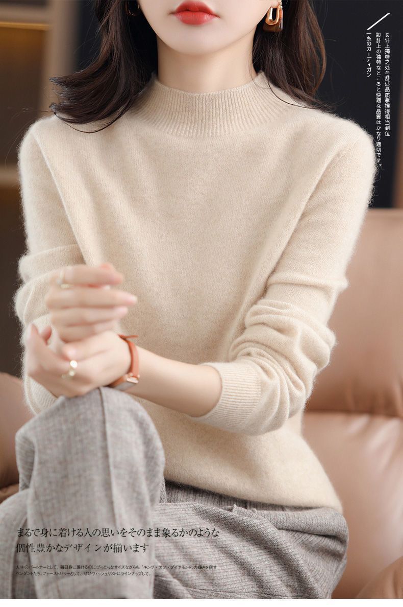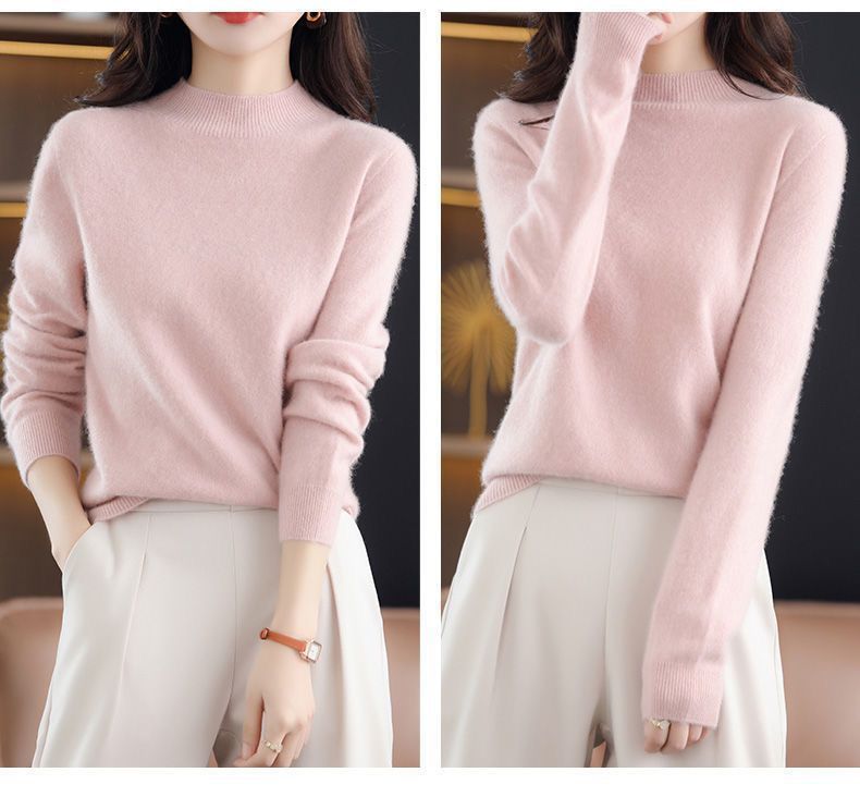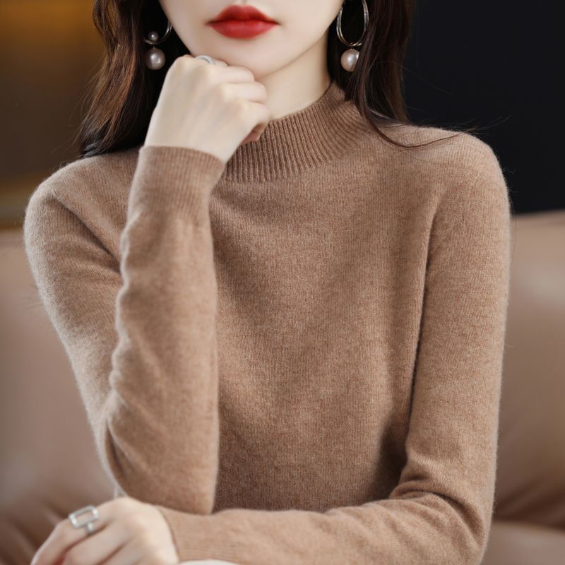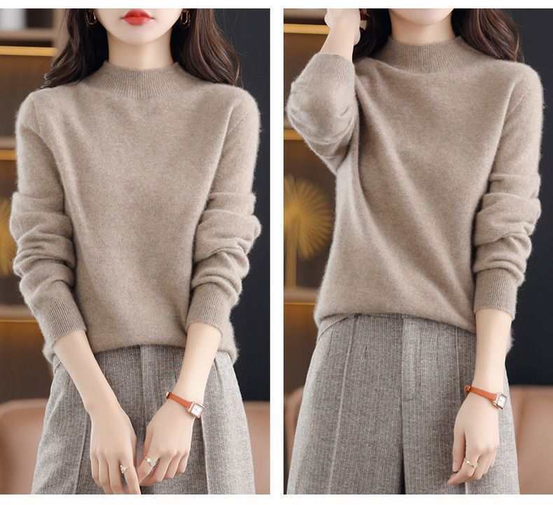 가을과 겨울의 새로운 미드 칼라 스웨터 여성용 풀오버 스웨터 내부 긴 소매 \ 짧은 소매 플러스 사이즈 탑스토어 가기