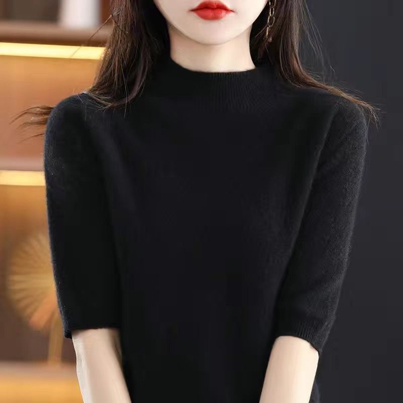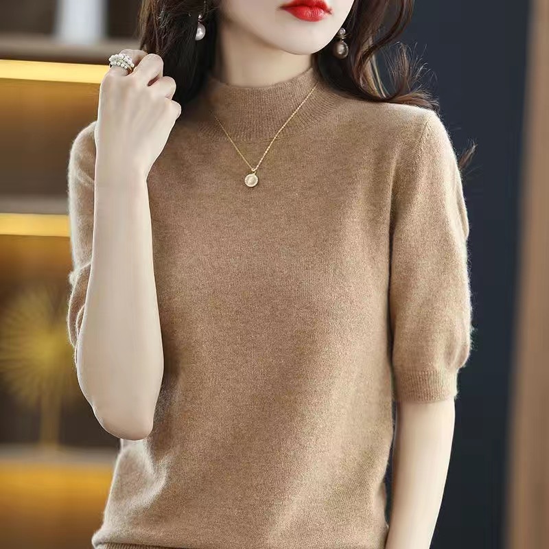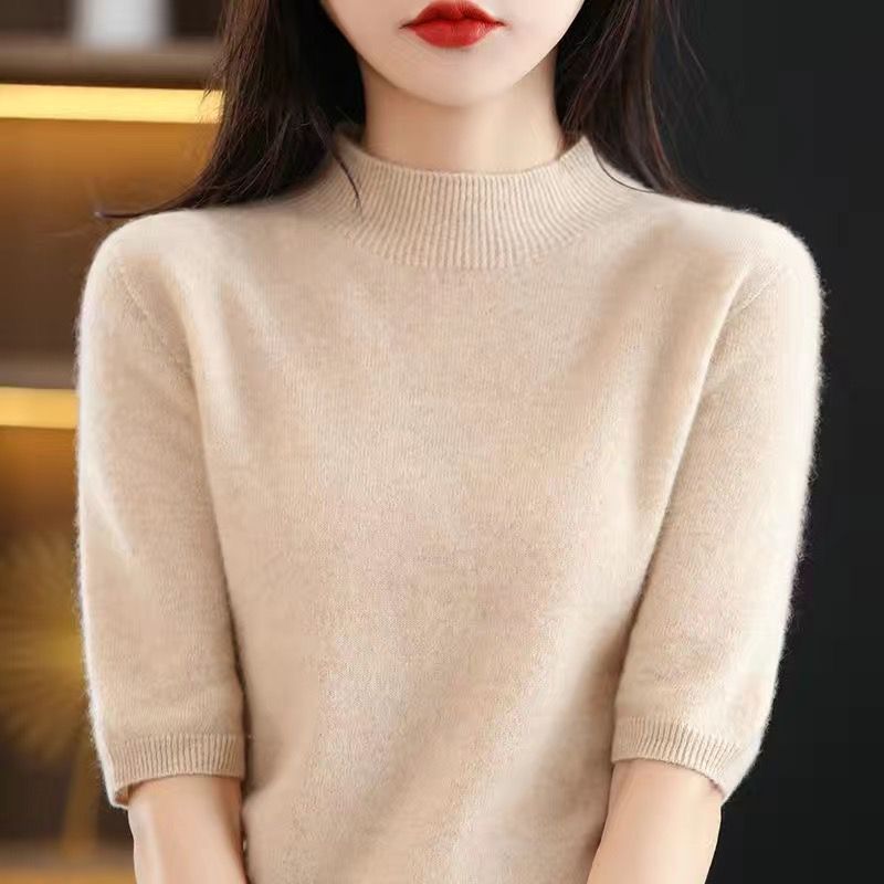 가을과 겨울의 새로운 미드 칼라 스웨터 여성용 풀오버 스웨터 내부 긴 소매 \ 짧은 소매 플러스 사이즈 탑