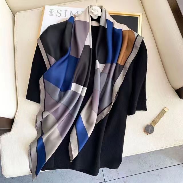 90x90 실크 스카프 새로운 봄, 가을 대형 사각형 스카프 세련된 스카프 목 스카프 외국 스타일 엄마 기질 여성 스카프스토어 가기