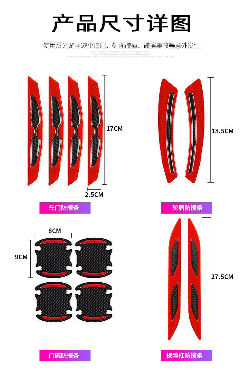 자동차 충돌 방지 스트립 백미러 경고 반사 스티커 도어 충돌 방지 스트립 스티커 휠 눈썹 앞 바 스크래치 방지 고무 스트립