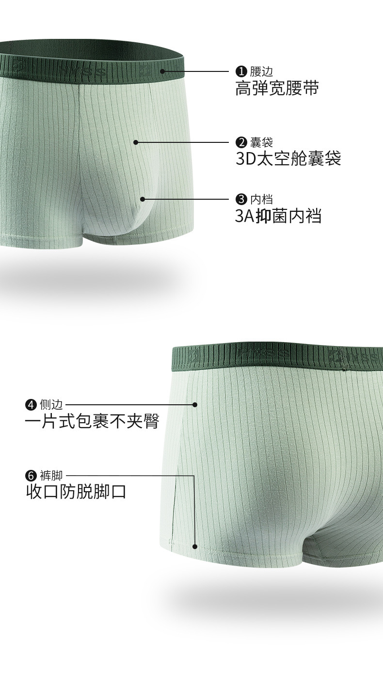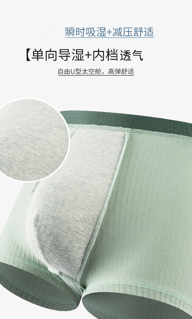 남성용 순면 골지 팬티 스트라이프 그래핀 반바지 단색 중간 허리 남성 사각 팬티 통기성 항균스토어 가기