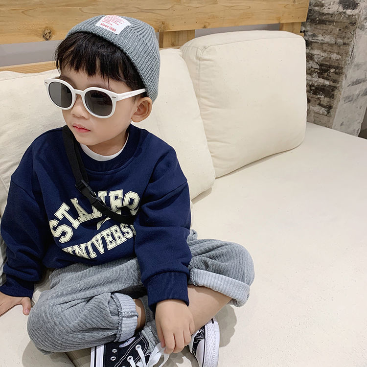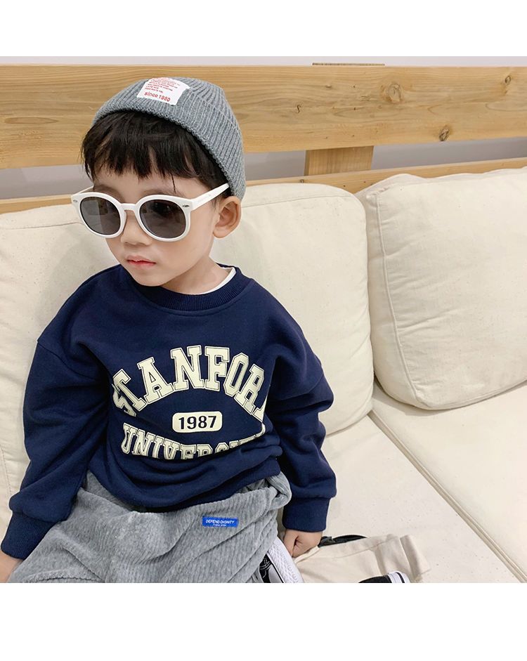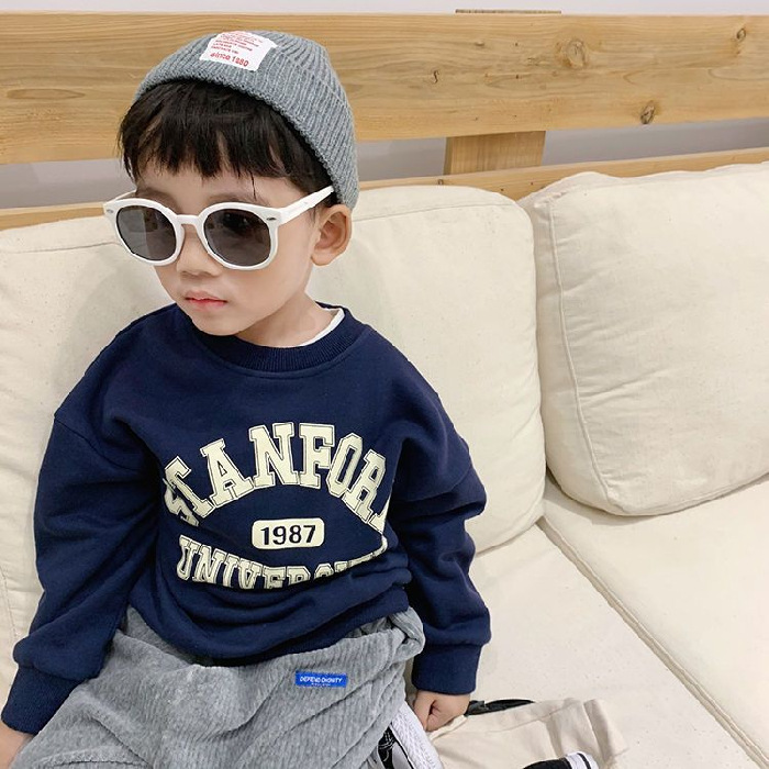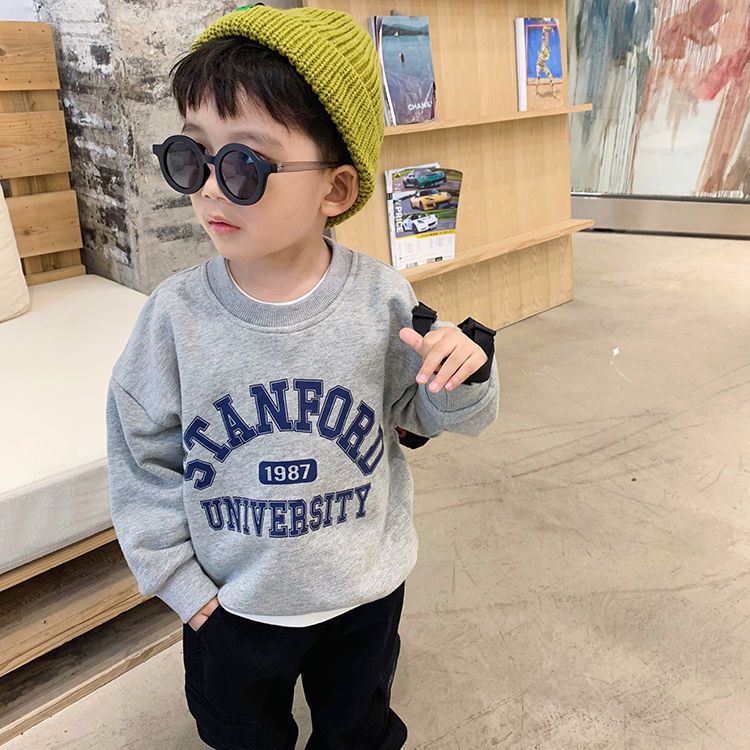 면 아동복 남아 레터 프린트 스웨터 대형 아동용 느슨한 모든 매치 캐주얼 웨스턴 스타일 티셔츠 봄과 가을 얇은 탑스토어 가기