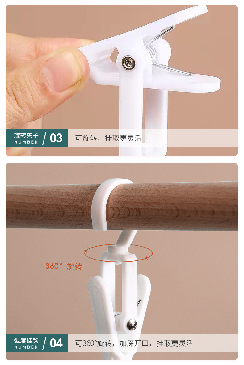플라스틱 커튼 클립 침대 시트 옷 모자 장갑 신발 보관 클립 수건 양말 회전 후크 클립 회전식 보관