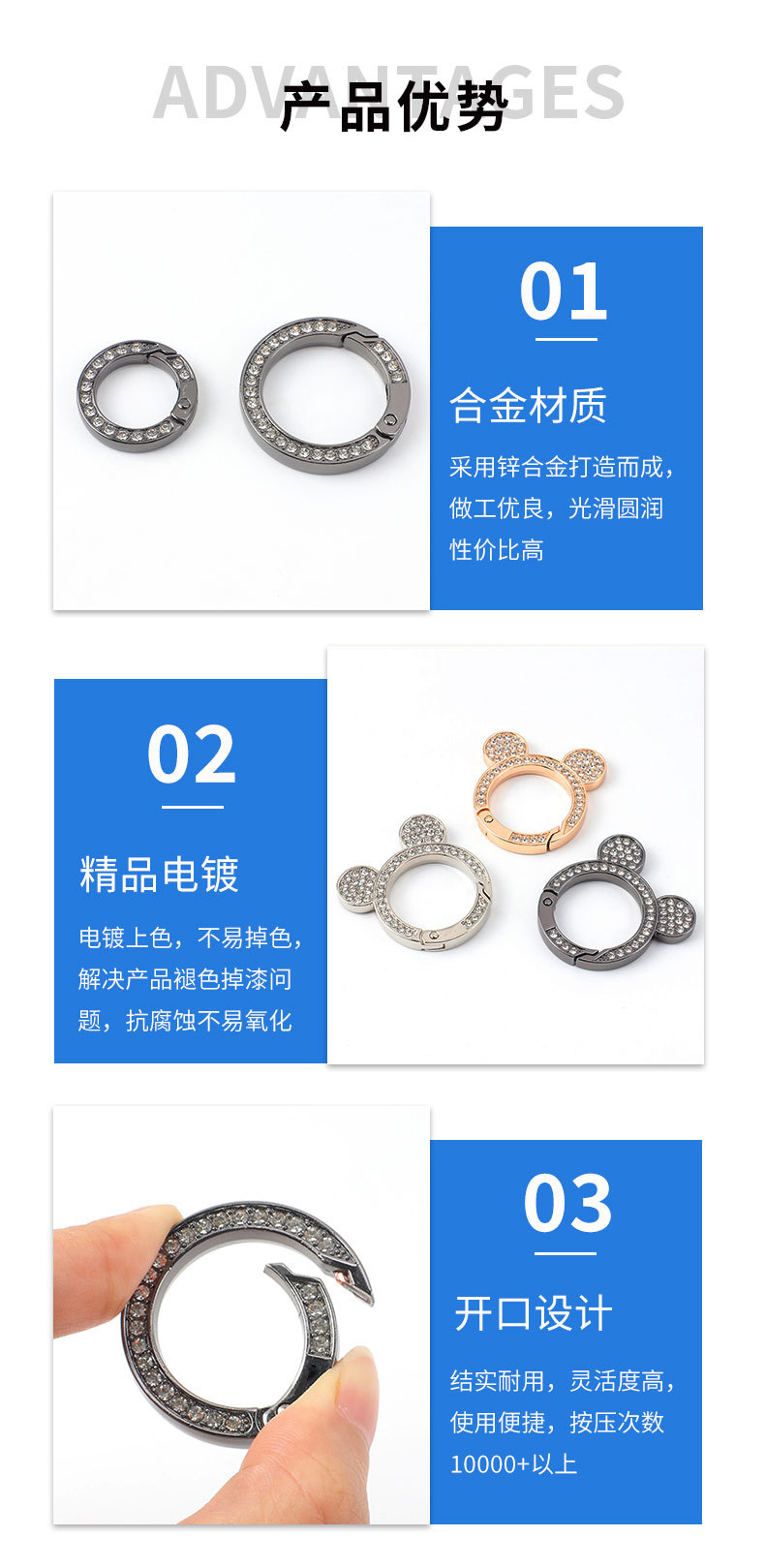 드릴 아연 합금 스플릿 링 금속 자동차 키 체인 DIY 부품 액세서리 선물 도매 다이아몬드 스프링 링