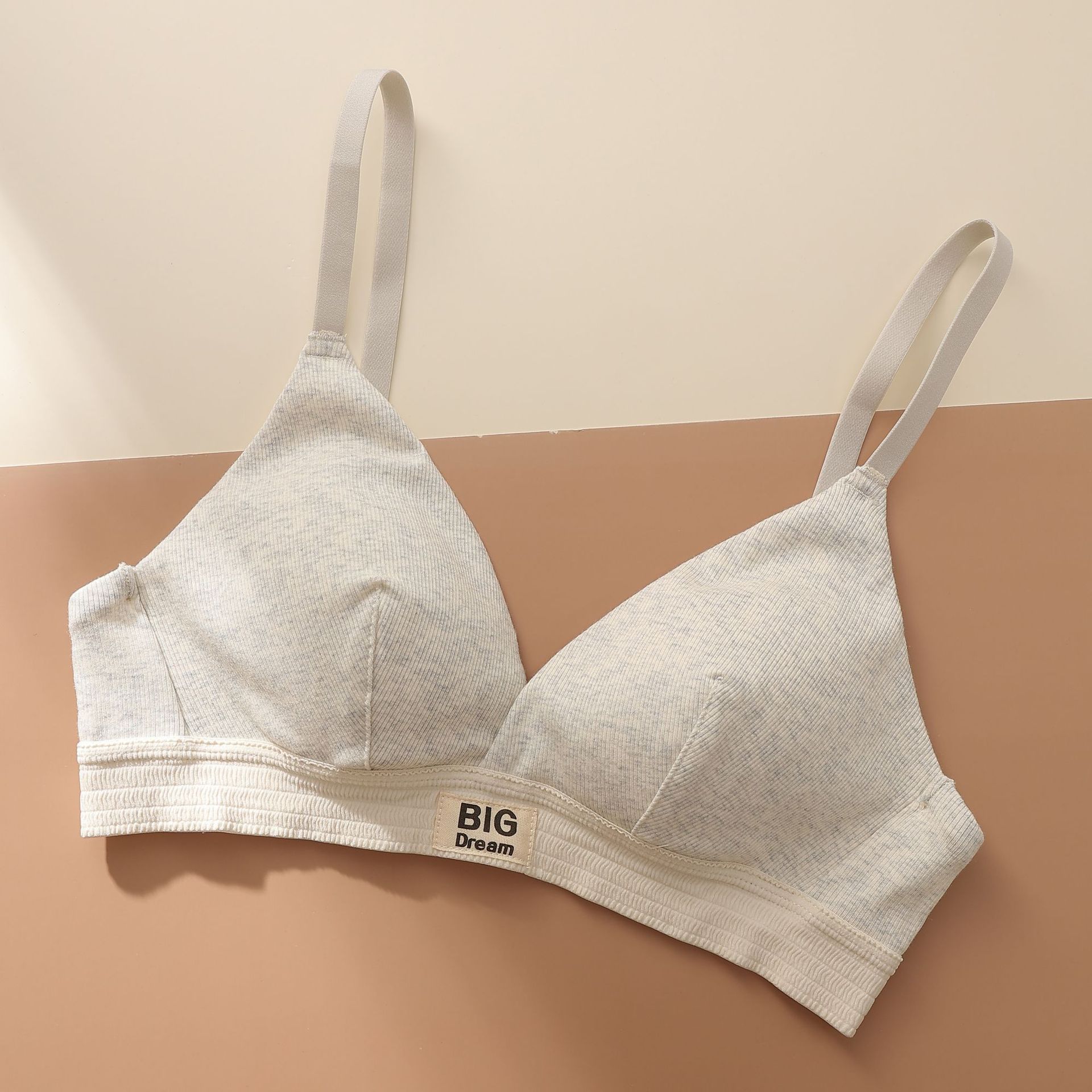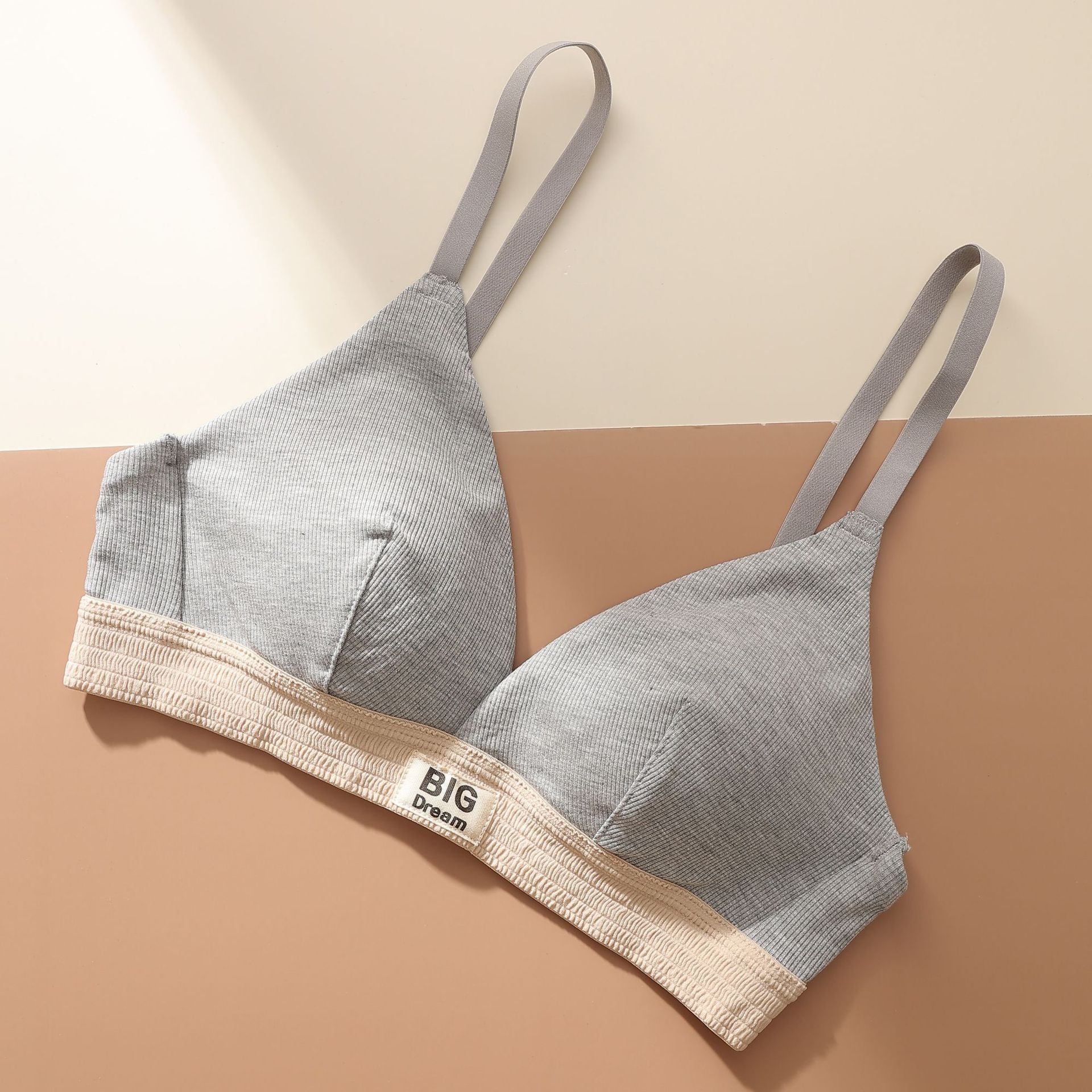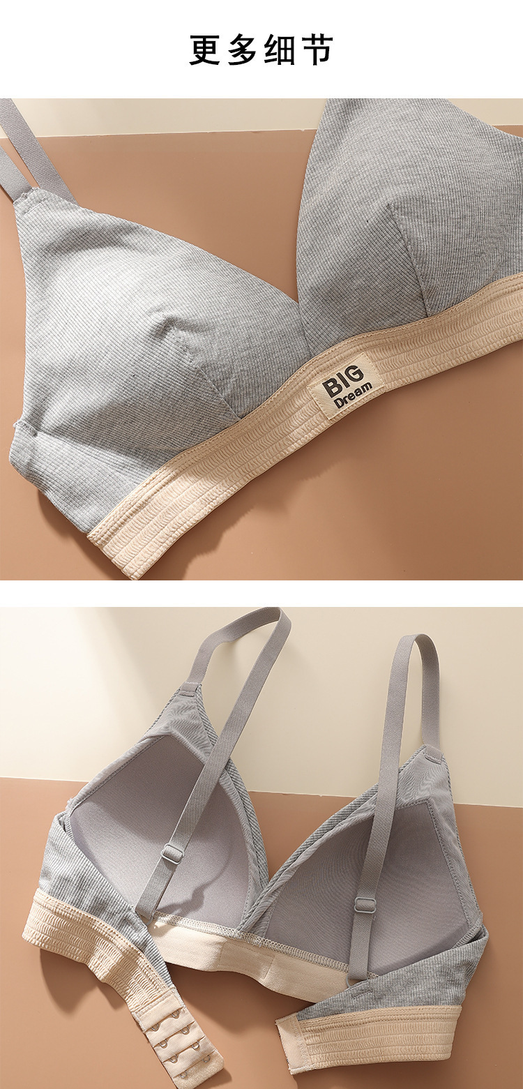 螺纹舒适薄款字母宽边拼色运动内衣聚拢透气无钢圈三角杯文胸2287