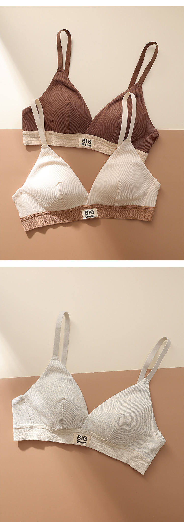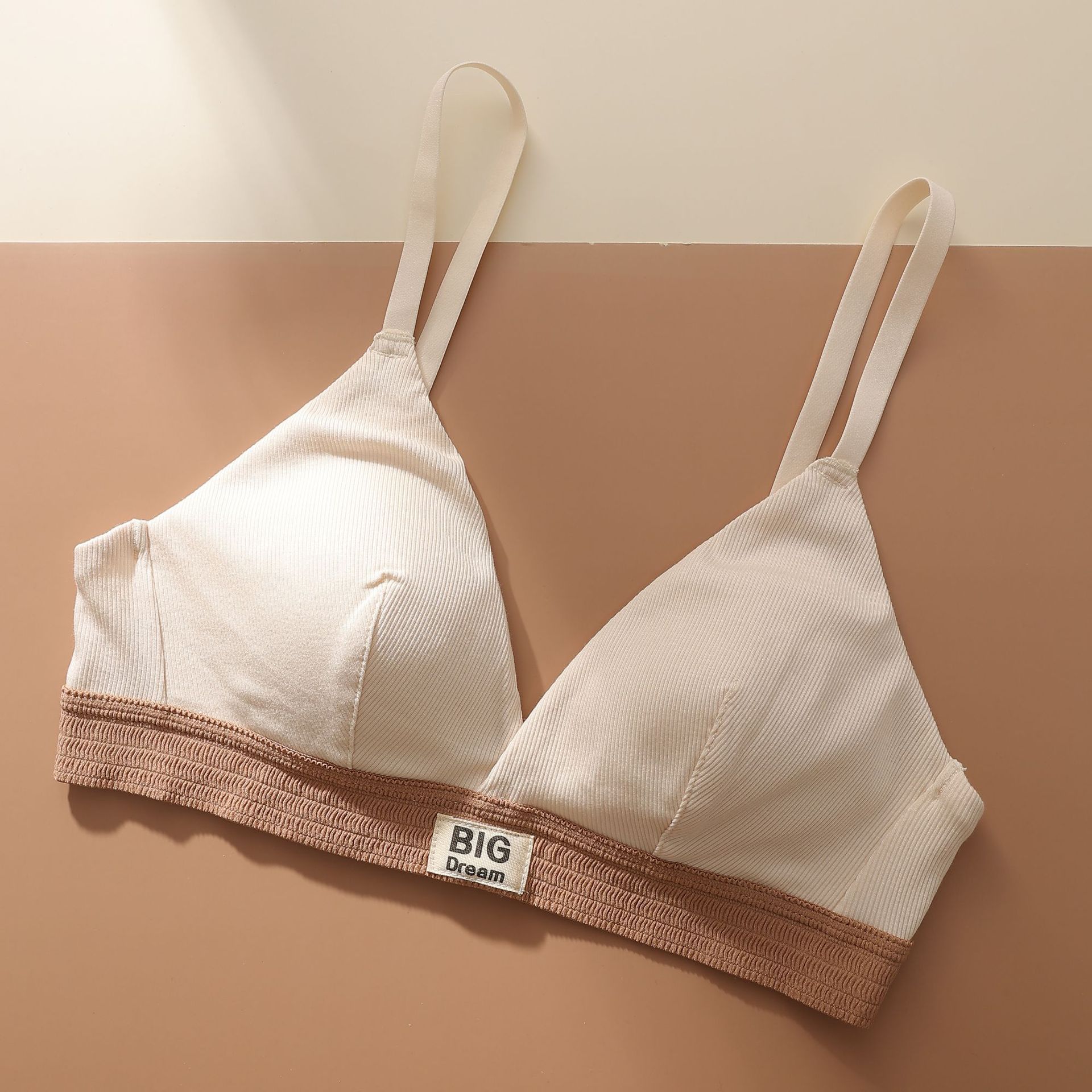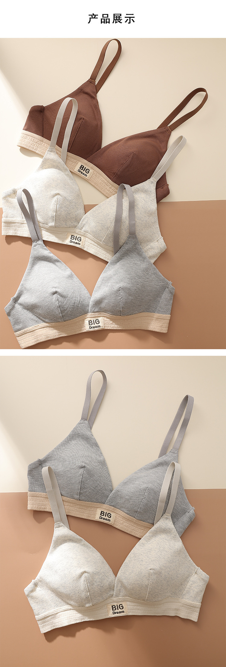 螺纹舒适薄款字母宽边拼色运动内衣聚拢透气无钢圈三角杯文胸2287