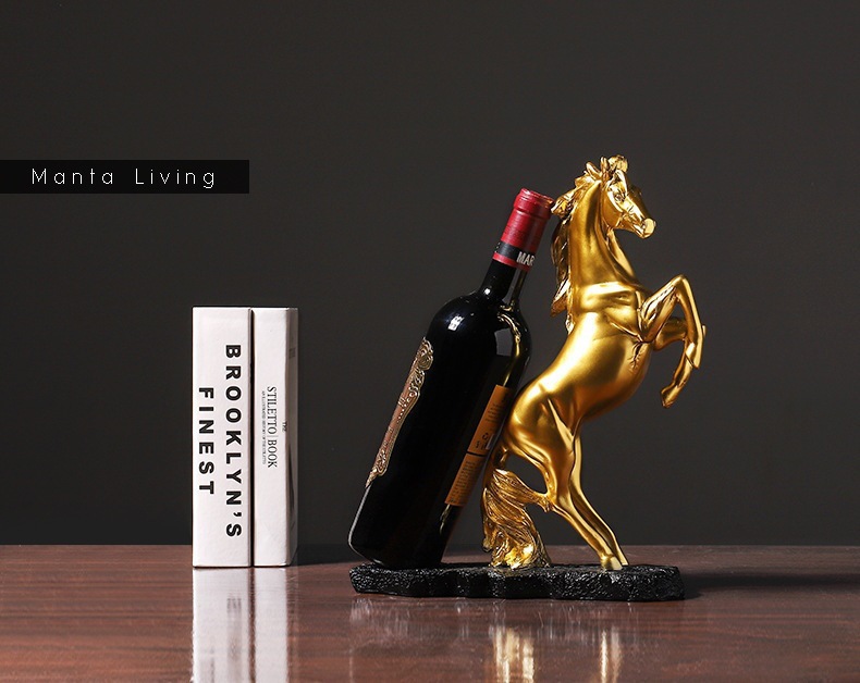 가벼운 럭셔리 황금 말 와인 랙 브래킷 말에 성공 거실 와인 캐비닛 홈 장식 장식품 수지 공예품 도매