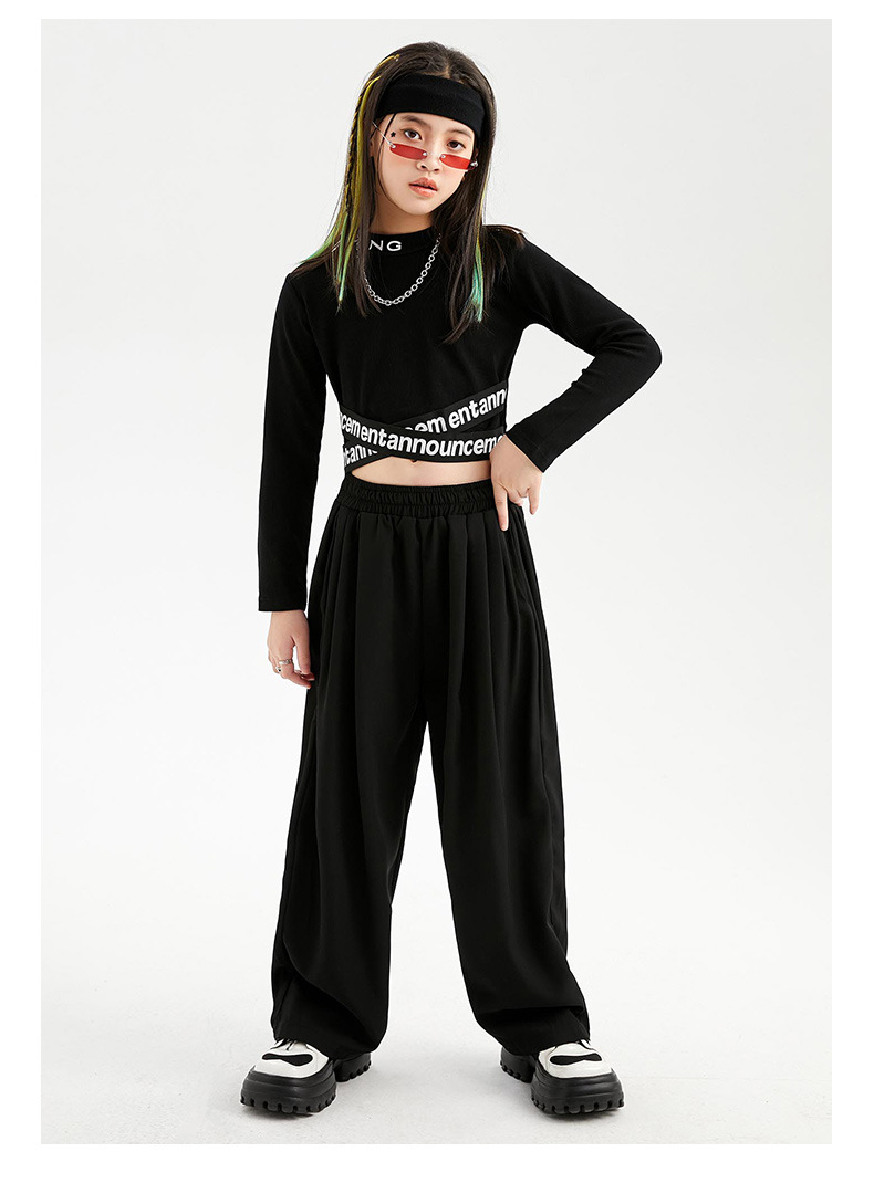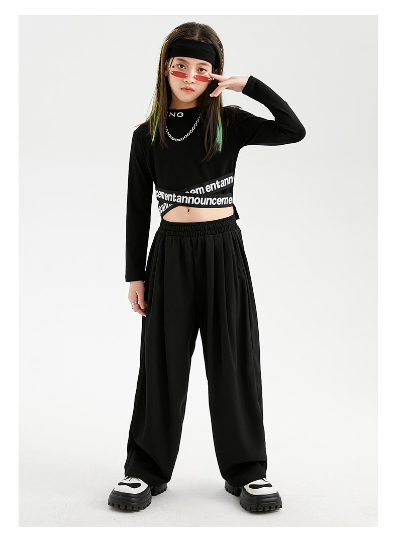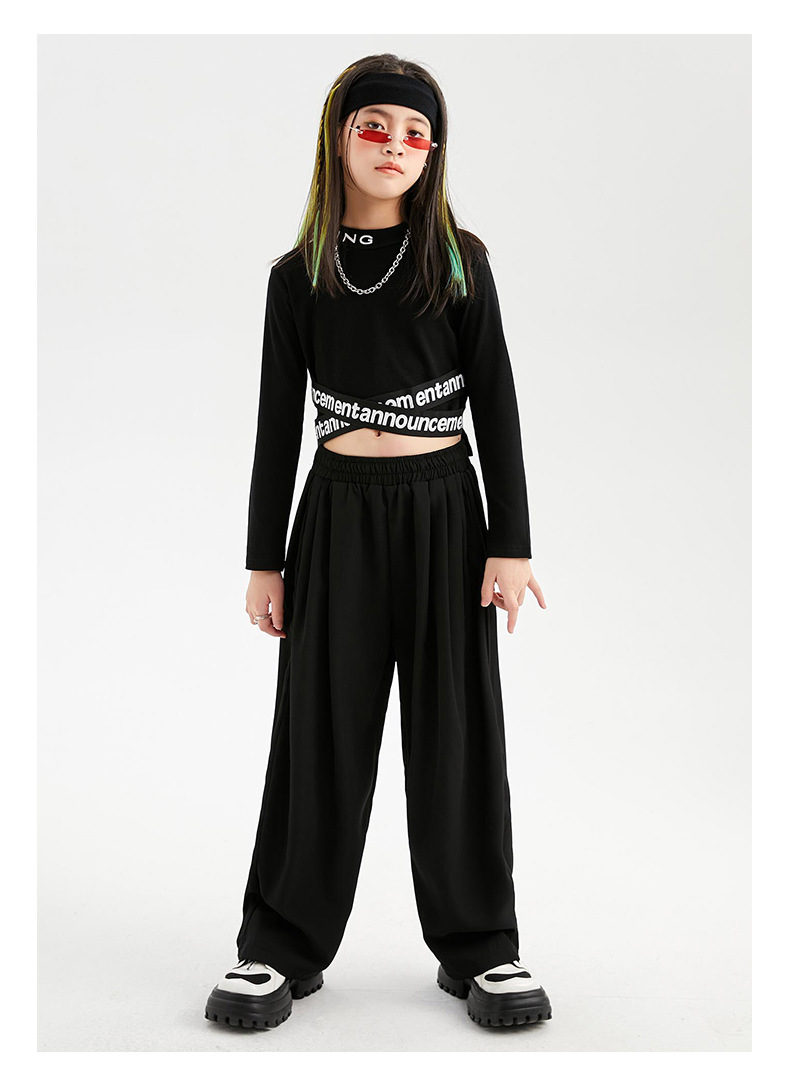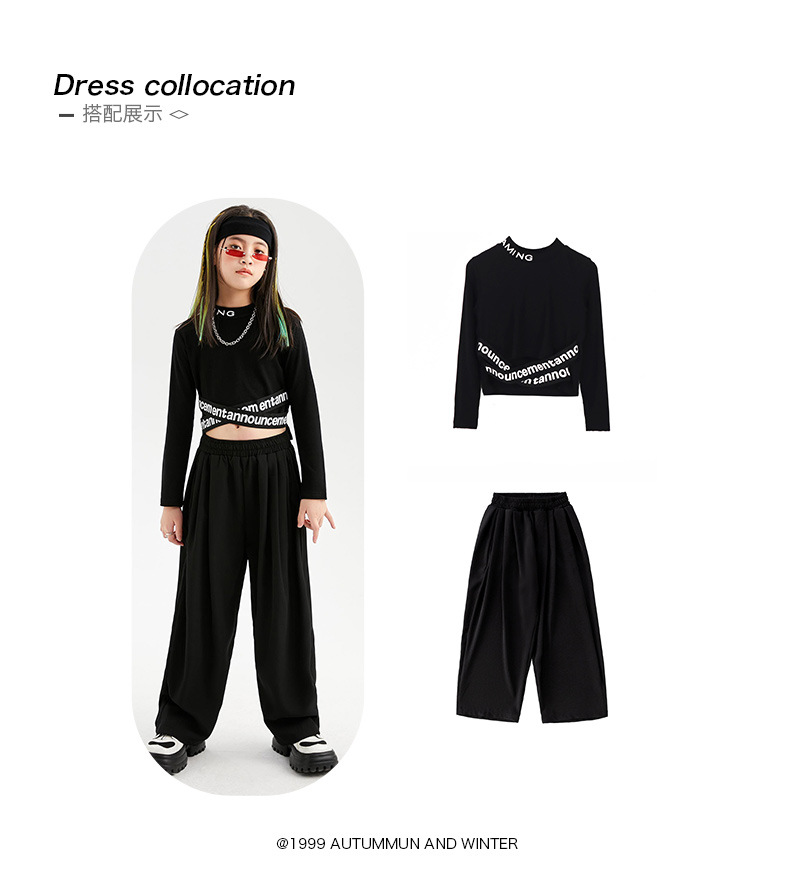 어린이 공연복 힙합 소녀 재즈 댄스 의상 아동용 레터 크롭탑 연습복 스트리트 댄스 패션 의류스토어 가기