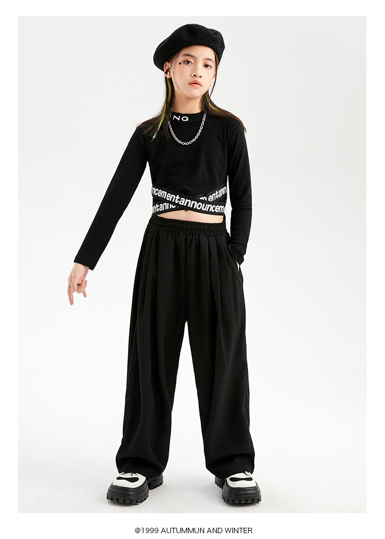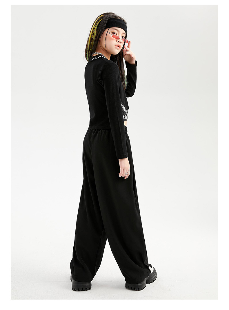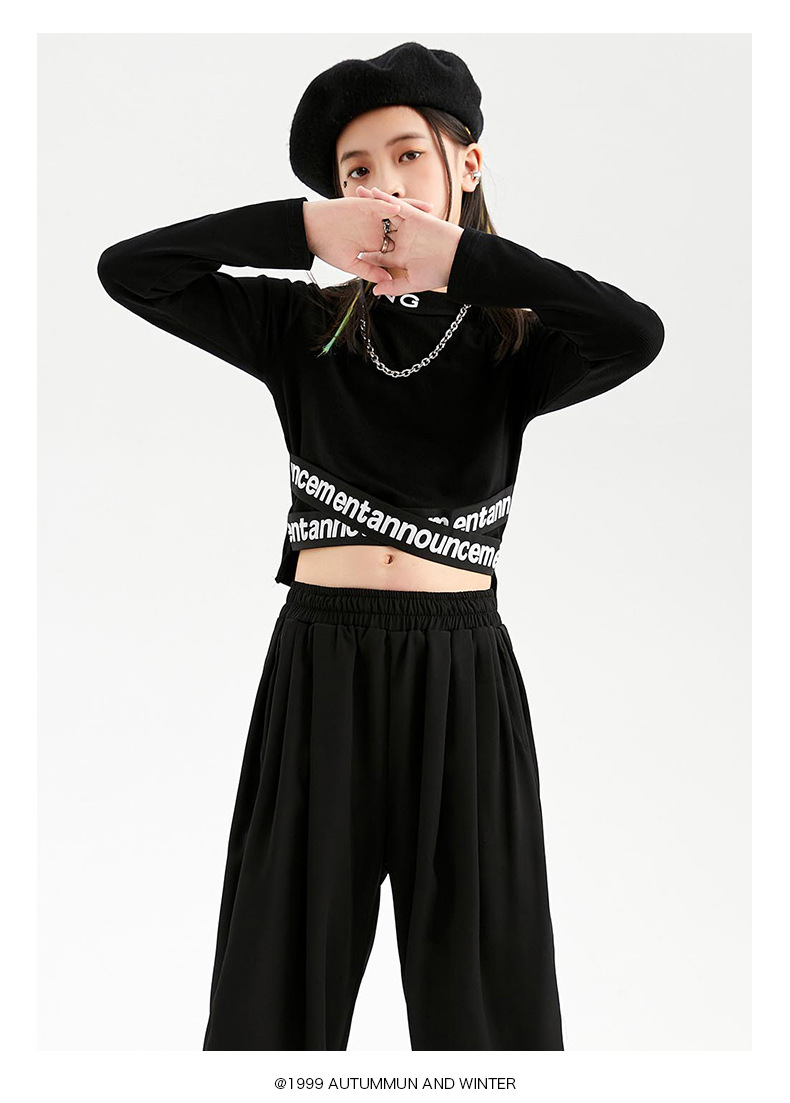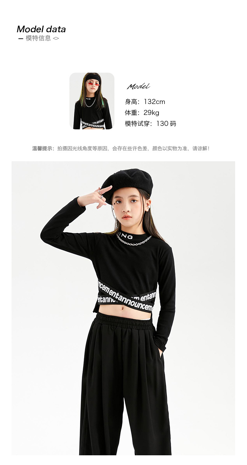 어린이 공연복 힙합 소녀 재즈 댄스 의상 아동용 레터 크롭탑 연습복 스트리트 댄스 패션 의류