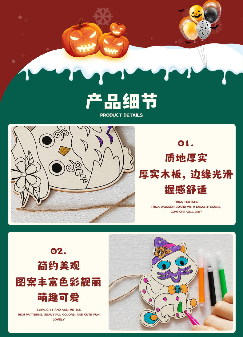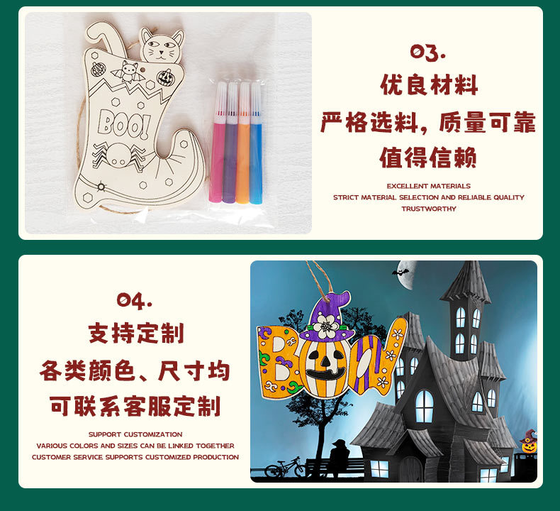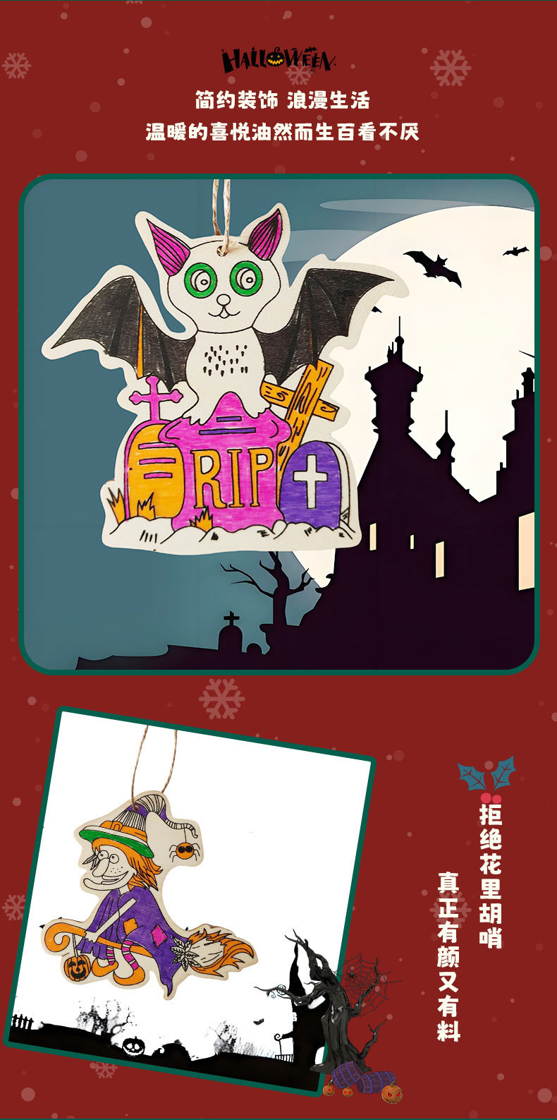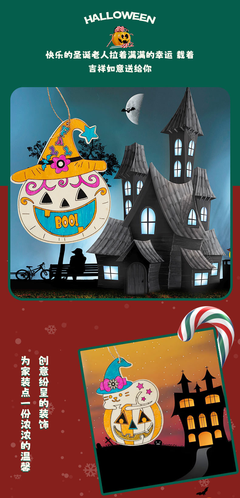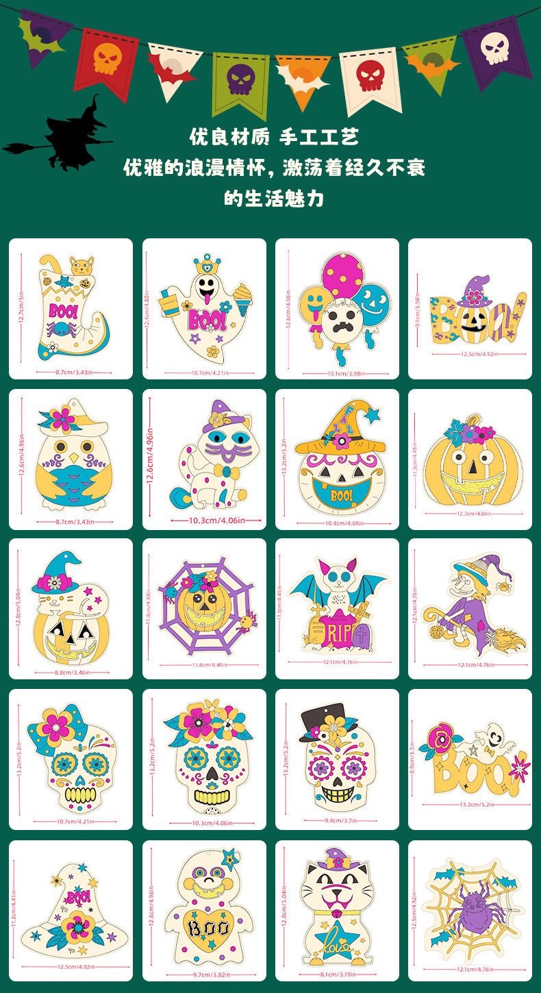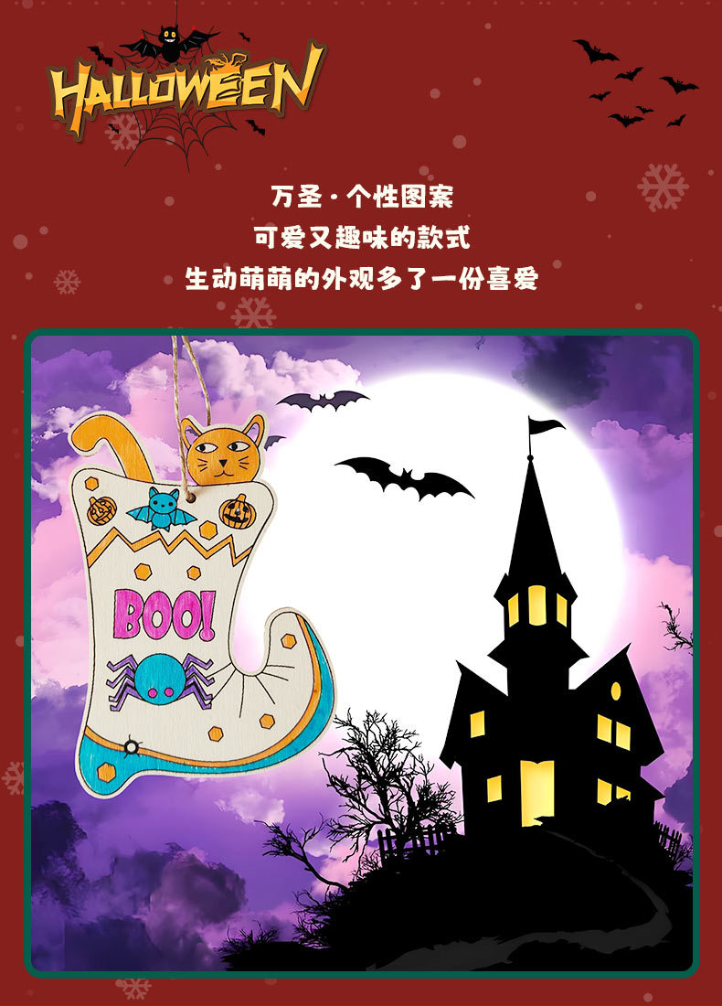 할로윈 크로스보더 DIY 컬러풀한 나무 그림판 호박 유령 만화 어린이 낙서판 할로윈 장식품스토어 가기