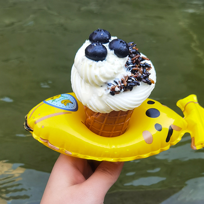 인터넷 축하 미니 팽창식 수영 반지 차가운 음료 가게 아이스크림 바나나 반지 우유 차 컵 세트 어린이 물 놀이 손 인형스토어 가기