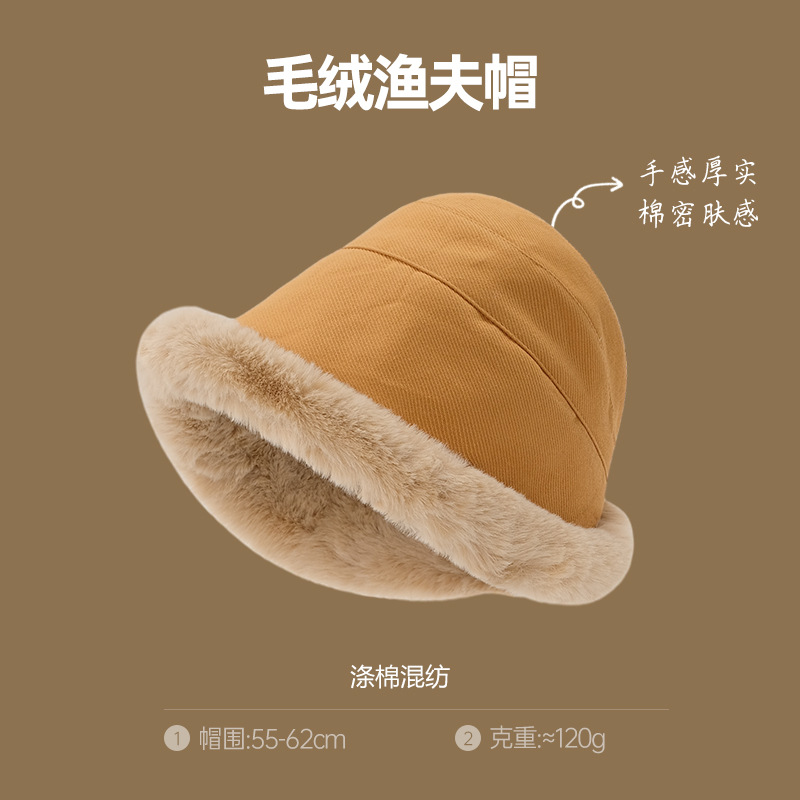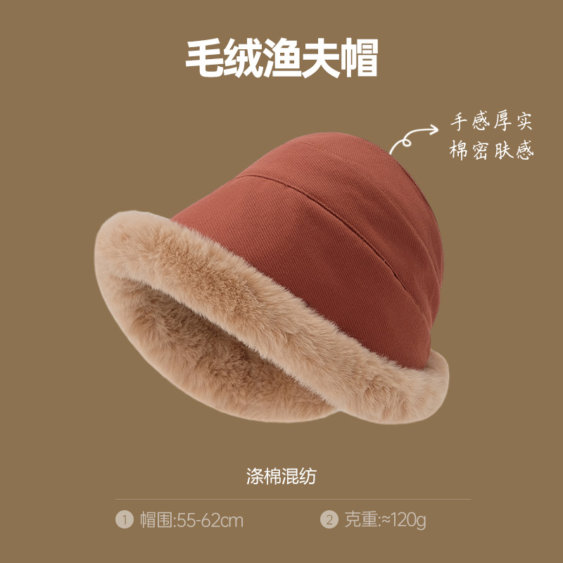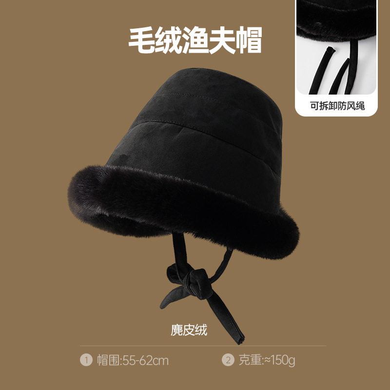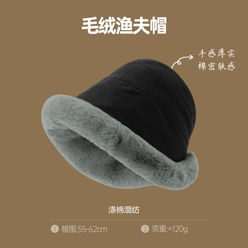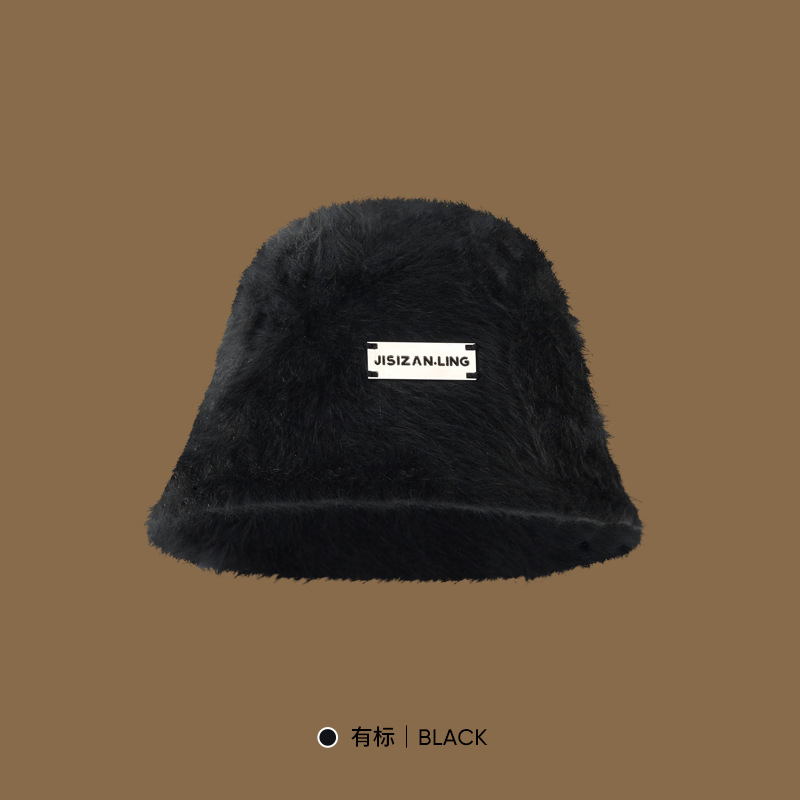 겨울 봉제 모자 패션 여성의 가을 작은 검은 색 라벨 따뜻한 분지 모자 털이 많은 어부 모자 겨울 소녀스토어 가기