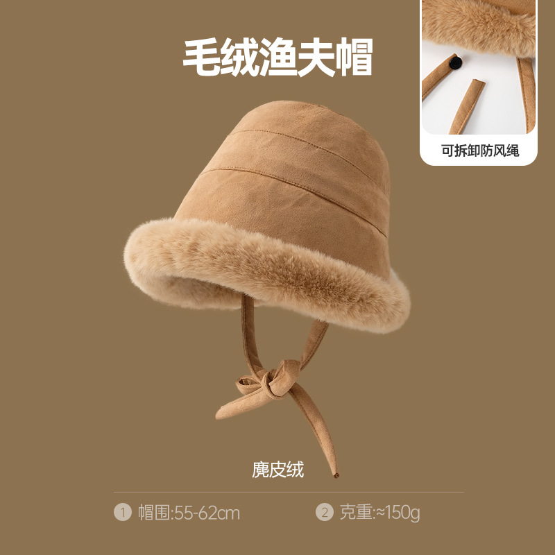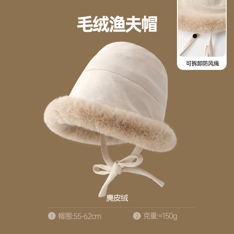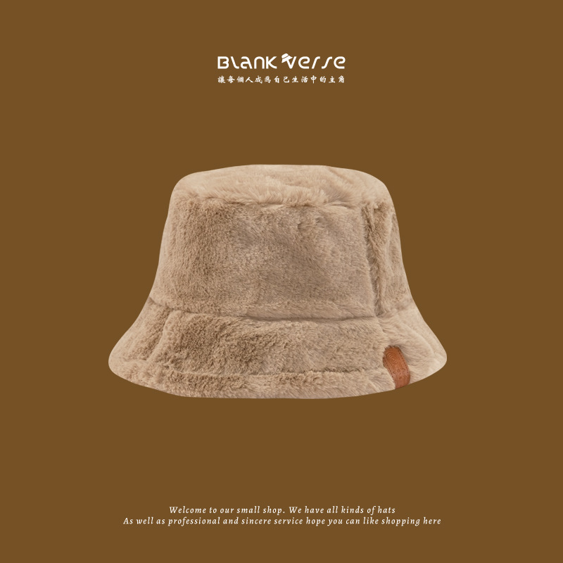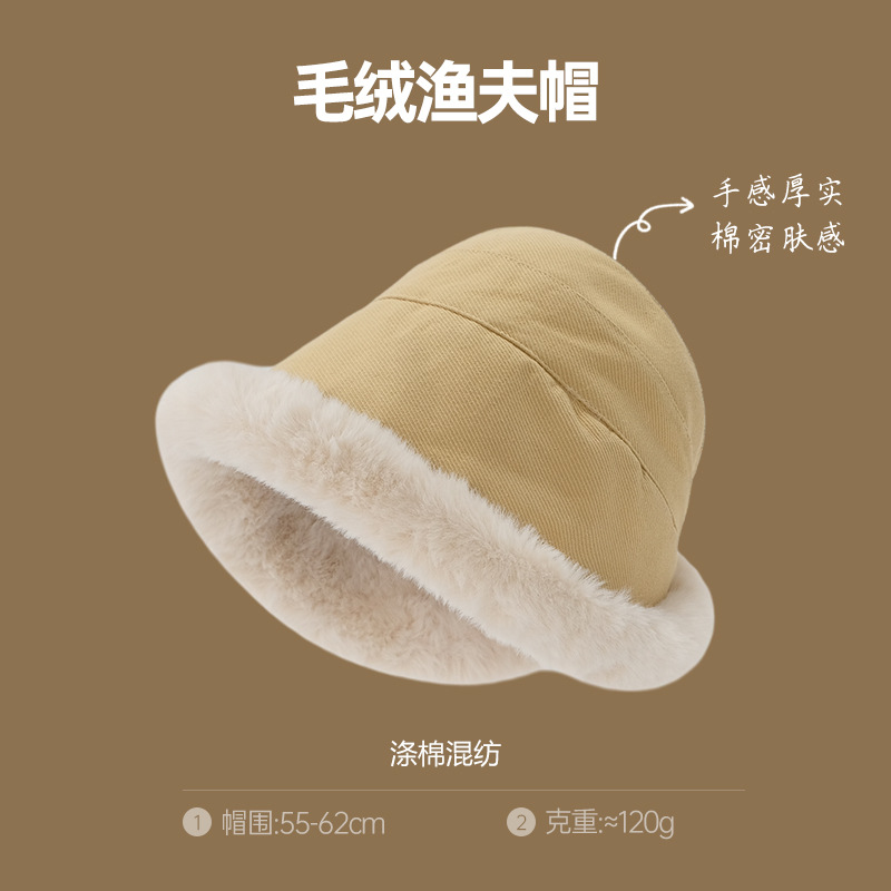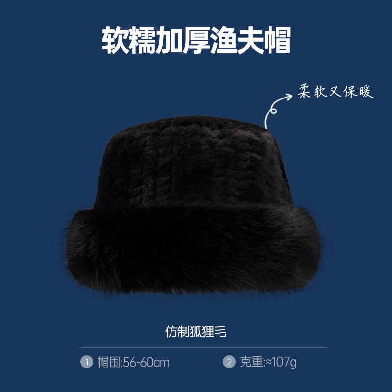 겨울 봉제 모자 패션 여성의 가을 작은 검은 색 라벨 따뜻한 분지 모자 털이 많은 어부 모자 겨울 소녀스토어 가기